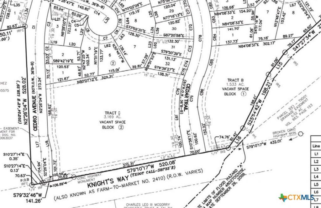 Commercial Land - Located at the corner of FM 2410 and Cedar Trail - 3.169+/- Acres zone B4 Commercial. Priced at $690,208.00 or $5 psf. Located in the city limits of Harker Heights, Texas. TXDOT Traffic Count is 6,423 cars per day in this growing area. City water and sewer are available. Examples of B4 Commercial use is any permitted use of lower zoning such as office, general business, coffee shop, barber shop, school, police or fire station, place of worship, fitness center, cleaners, pharmacy, florist, nursing home, child care, real estate office, restaurant, retail store, grocery store, bank, hotel, and parking lots, bakery, dance hall, skating rink, public garage, bowling alley, antique shop and more. An additional 3.169+/- acres is available next door on the other side of Cedar Trail at FM 2410.