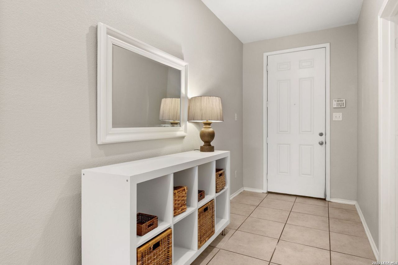 Welcome to Auburn Hills at Woodcrest! This stunning two-story home offers 5 bedrooms, 3.5 bathrooms of thoughtfully designed living space and charm. Step inside to an open-concept design featuring expansive living areas ideal for families and entertaining. The chefs kitchen showcases a large island, unique custom cabinetry, generous counter space, and a seamless flow into the main living and dining areas. Creating the perfect gathering space for all to enjoy. All appliances are included with the home. A dedicated laundry room, complete with washer and dryer, adds everyday convenience. The private primary suite located on the first floor serves as a relaxing retreat, featuring a spacious walk-in closet and a spa-inspired bath with a separate shower. Upstairs youll find a private secondary suite complete with its own full bathroom, ideal for guests or multi-generational living and an expansive game room offering endless possibilities for entertainment, a media space, or additional living area. The spacious backyard is ideal for relaxing or hosting gatherings, featuring a covered patio, a large storage shed, and plentiful fruit and shade trees that create a serene outdoor oasis. The property backs to a greenbelt and includes a private gate offering direct access, providing added privacy and beautiful natural views. Designed with comfort and efficiency in mind, the home is equipped with energy-efficient solar panels paired with two backup battery packs that store solar energy, helping reduce utility costs while providing added peace of mind. Residents enjoy family-friendly neighborhood amenities including a community pool, basketball court, playground, and access to scenic walking trails. Perfectly located near shopping, dining, and IH-35 within the highly regarded Northside Independent School District (NISD), this home also offers convenient access to Fort Sam Houston and Randolph Air Force Base, making commuting simple and efficient. This exceptional property is ready for immediate enjoyment truly combining space, style, energy efficiency, and an unbeatable location. Schedule your private showing today!