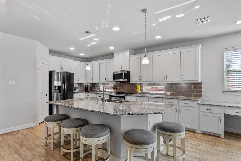 One of the Best Priced 5 Bedroom Homes in Harvest, Now with HEB Coming Minutes Away! Welcome to this beautifully maintained 5-bedroom, 4-bath home in the highly sought-after Harvest community, located in top-rated Argyle ISD. This is the home that finally delivers the space, layout, and lifestyle growing families have been waiting for. With 3,221 square feet of thoughtfully designed living space, this move-in ready home offers the perfect blend of comfort, functionality, and style. NEW Class 4 Roof in 2024, NEW Carpet 2025, NEW Microwave & Dishwasher in 2023! Step inside to discover an open-concept layout featuring a spacious kitchen with granite countertops, a large island with seating, stainless steel appliances, and abundant cabinetry—all flowing seamlessly into the dining and living areas anchored by a cozy gas fireplace. Extra STORAGE abounds, from an oversized closet under the stairs to walk in attic storage with decking! Natural light fills the home, highlighting the clean finishes and inviting atmosphere throughout. The private primary suite offers a relaxing retreat with a soaking tub, separate shower, and dual vanities. Additional bedrooms provide flexibility for guests, 2nd home office, or play space. Enjoy outdoor living under the covered patio with an extended pergola—ideal for entertaining or unwinding. The backyard offers a low-maintenance space with room to play. Plus, it features a raised garden bed and rain barrel system for unleashing your green thumb! 2 car garage has convenient ceiling-mounted storage. Located in the award-winning Harvest community, residents enjoy resort-style amenities including pools, parks, walking trails, and community events. Conveniently located near shopping, dining, and major commuter routes. Don’t miss this opportunity to own a move-in-ready home in one of Argyle’s most desirable neighborhoods. Opportunities like this, combining layout, condition, & forward-looking location advantages, are becoming increasingly limited