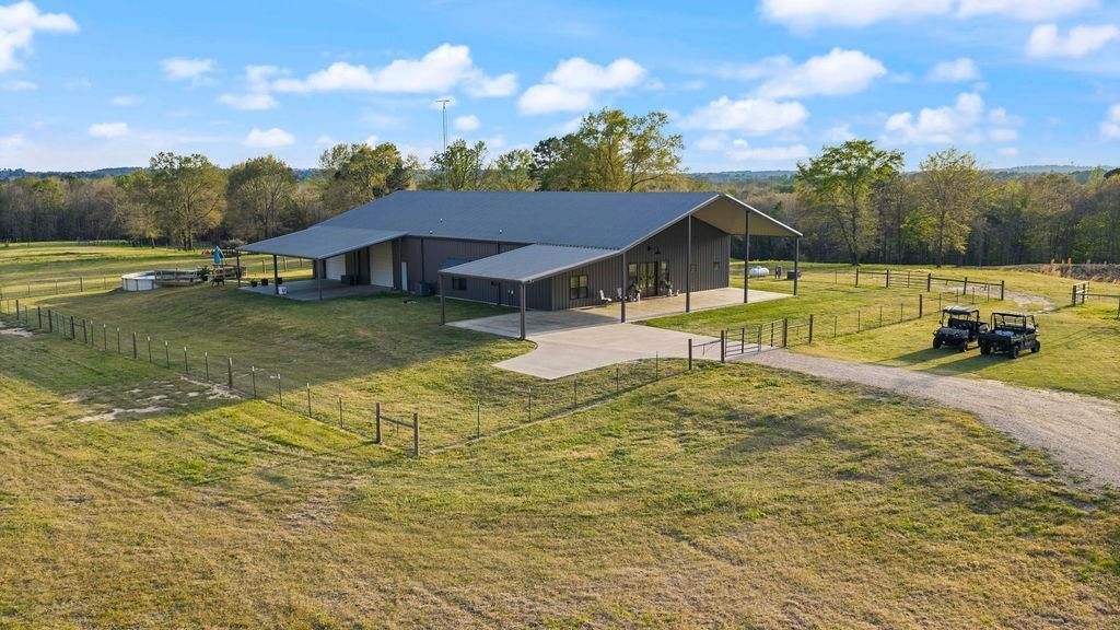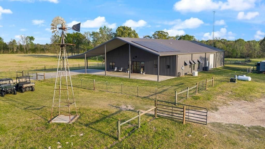 The Ultimate East Texas Legacy Ranch: 54.6-Acre Custom Estate. 6,000+ sq ft under roof. Discover the perfect balance of luxury and the rugged freedom of the Texas landscape on this gated 54.6-acre property. Built with an obsession for quality, this custom home offers 3,450 sq ft of living space defined by soaring vaulted ceilings, real wood accents, and designer quartz and tile throughout. The heart of the home is an open-concept masterpiece designed for hosting, while the flexible 450 sq ft upstairs loft serves as a versatile fourth bedroom, theater room, or home office. The lifestyle here is defined by wide-open spaces and effortless recreation. Imagine starting your morning with coffee on the patio as the sun rises over two stocked ponds, then hopping on an ATV to explore miles of private trails and cross-fenced pastures perfectly suited for hay and livestock. For the craftsman or collector, the 3,000 sq ft insulated shop is a premier feature, boasting four oversized roll-up doors for seamless equipment access and a massive workspace. For additional space, a barn and lean-to are in place and for your farm equipment and animals. This property combines modern amenities with classic country utility, featuring seller-owned solar panels for energy efficiency, a private storm shelter, a chicken coop and a classic windmill. Dual road frontage with multiple gated entries provides excellent accessibility across the entire Ag-exempt acreage. Whether you are casting a line for a morning catch, tending to the land, or relaxing by the pool, every inch of 1132 CR 4470 exudes custom quality and peace. Secure your piece of Winnsboro’s finest acreage today.