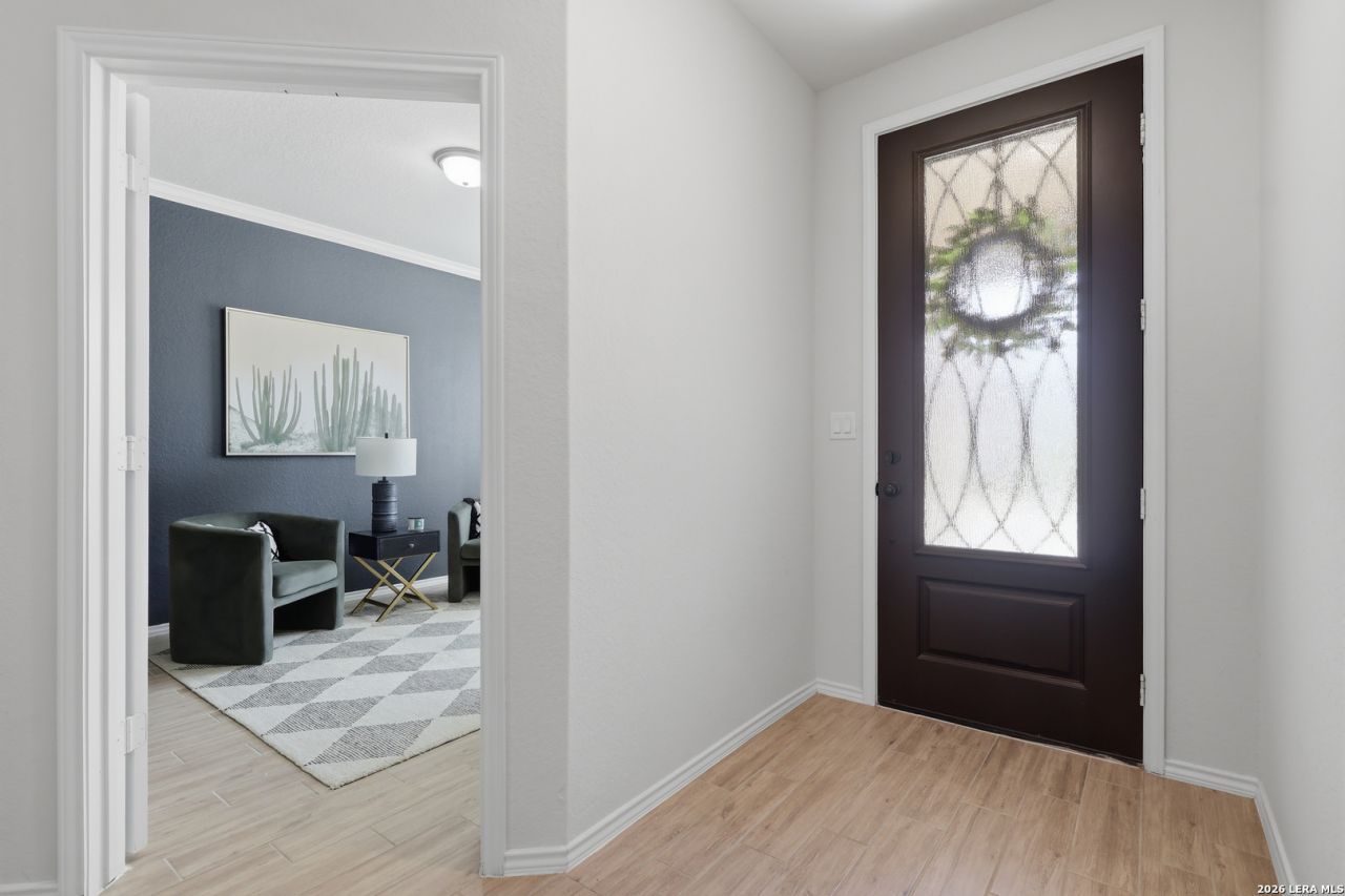 Located in the desirable Davis Ranch community, this turn-key, meticulously maintained and tastefully upgraded home looks and feels like a model home. Designed for both comfort and entertaining- the high ceiling and stylish chandelier in the foyer offers that wow factor, but the heart of the home is certainly the stunning gourmet kitchen- showcasing an extra large island with upgraded quartz countertops, elegant brushed gold hardware, designer lighting, two large pantries, and double ovens that for your convenience can be pre-heated remotely from your phone! For cozy evenings, relax in the inviting living area centered around a beautiful stone fireplace, adding warmth and character. The owners suite serves as a private retreat, complete with a bay window, tray ceiling, two large walk-in closets, and a spa-like ensuite bathroom featuring an oversized walk-in shower and a crisp white quartz double vanity. An Instagram worthy drop-zone area, an over sized designated office, a large laundry room and a half bathroom complete the main level. Upstairs, there is so much room for activities with a large game room and a dedicated media room, perfect for movie nights or entertaining. Secondary bedrooms are spacious and each have their own walk in closet, one with an ensuite bathroom. An abundance of extra storage closets makes for easy organization. Step outside to the covered patio with two ceiling fans and the picture perfect extended patio overlooking an expansive backyard and beautifully maintained gardens and lawn, effectively watered by a state of the art irrigation system. All this, plus a true 3 car garage complete with a water softener and whole house water filtration system. Within the community, residents enjoy two sparkling resort-style pools with cabanas, two playgrounds, a shaded picnic pavilion, and pickleball court. Ideally located within walking distance to the highly rated elementary and middle schools, and just two miles to the newest Northside Highschool. The community backs up to the sprawling wilderness of Government Canyon State Natural Area which offers over 40 miles of scenic biking and hiking trails. Why Wait to Build? This exceptional home delivers the upgrades, quality, and lifestyle you deserve without construction delays making it an outstanding value in Davis Ranch. Schedule your private showing today, or join us for an open house this Saturday from 11am-2pm.