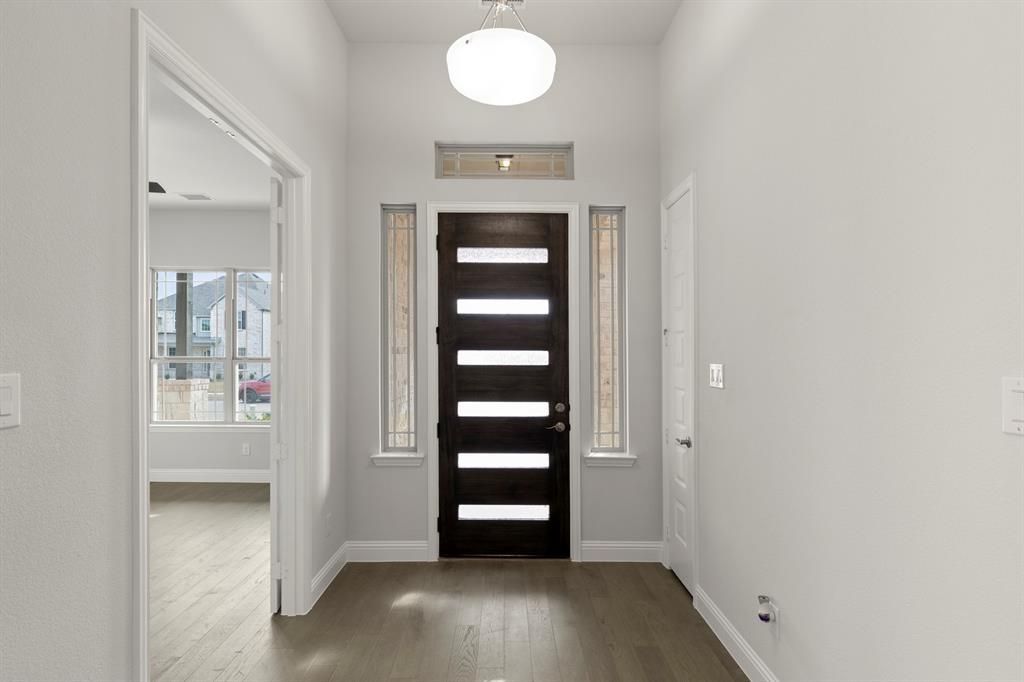 MLS# 21098346 - Built by Windsor Homes - Ready Now! ~ Imagine walking into your new living area where the 14-foot ceilings soar above you, creating an open, welcoming atmosphere that flows right over the elegant engineered wood floors. The kitchen truly is the heart of the home. Youll have all the space you need with generous cabinets, anchored by a huge island topped with gorgeous quartz. Its equipped for serious cooking with a 30 gas cooktop, a handy stainless steel sink, and a fantastic set of stainless steel appliances, including those wonderful double air-fry ovens! Weve included thoughtful upgrades everywhere you look: from the rich feel of the 8-foot interior doors to the stylish glass doors on the study and the custom-look glass and wood front door. The primary bath is designed for relaxation, boasting a separate tub and shower, and all your vanities will have clean, modern quartz tops (even in the secondary baths!). Cozy evenings await you by the gas fireplace. This home is built to last with a 95% brick exterior and comes completely ready to enjoy with a full sod yard, sprinkler system, and a 6-foot privacy fence enclosing your beautiful extended covered patio.