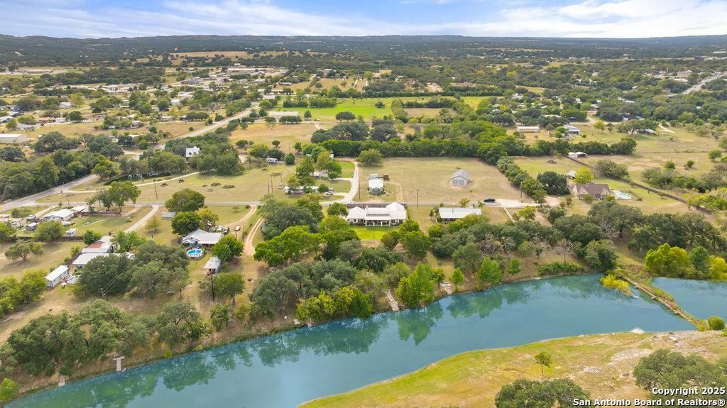Nestled on nearly an acre along the serene Blanco River, this 6-bedroom, 4-bath residence is a rare offering of timeless Hill Country architecture paired with modern sophistication. Completed in May 2023, the home showcases enduring limestone construction, a sleek metal roof, and a private gated entrance for both elegance and security. Step inside to soaring, light-filled spaces designed for both grand entertaining and quiet retreat. Thoughtful details abound-from enhanced window treatments and energy-efficient climate systems to designer lighting and premium water filtration. The kitchen is appointed with touch-activated faucets, a built-in microwave drawer, and instant hot water, blending convenience with refined style. Smart technology seamlessly integrates into daily life with whole-home surge protection, Wi-Fi-enabled controls, and a comprehensive security system with cameras overlooking both the property and the riverbank. Outdoors, expansive covered living areas invite year-round enjoyment, complete with a stone patio and propane connections for outdoor cooking. A three-car garage with EV charging capability enhances both function and lifestyle. Set against the natural beauty of the Blanco River, this home is more than a residence-its a private retreat, crafted with every modern comfort for those who value quality, privacy, and the best of Texas Hill Country living.