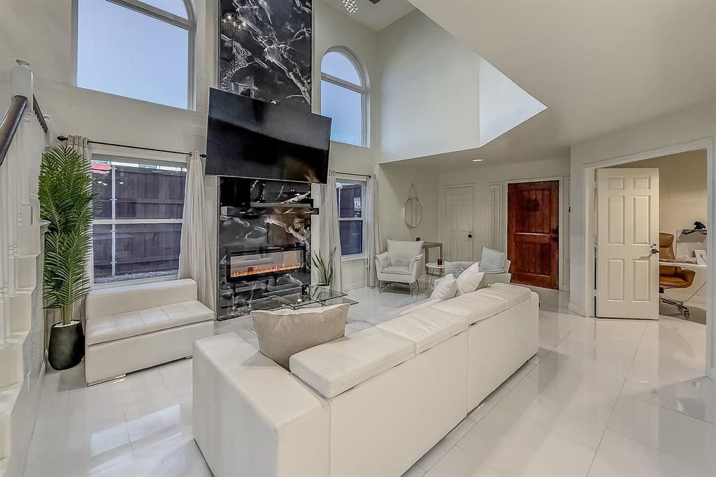New lower price, No HOA, Corner Lot in CarrolltonModern curb appeal meets thoughtful design in this 4 beds, 3 bath home with 2,430 sq ft. Flexible layout includes a private first-floor guest suite with full bath—perfect for guests or a home office.Bright living area with soaring ceilings and a dramatic floor-to-ceiling fireplace flows into formal dining. Kitchen features abundant cabinetry, granite countertops, and ample prep space (refrigerator negotiable).Spacious primary suite with fireplace and skylights. Upstairs offers two bedrooms, a loft or game room, and a large walk-in closet.Enjoy an epoxy-floor 2-car garage + carport for up to 3 more vehicles. Private backyard with 8-ft fence and covered patio—great for entertaining.Prime location near highways, shopping, and dining.