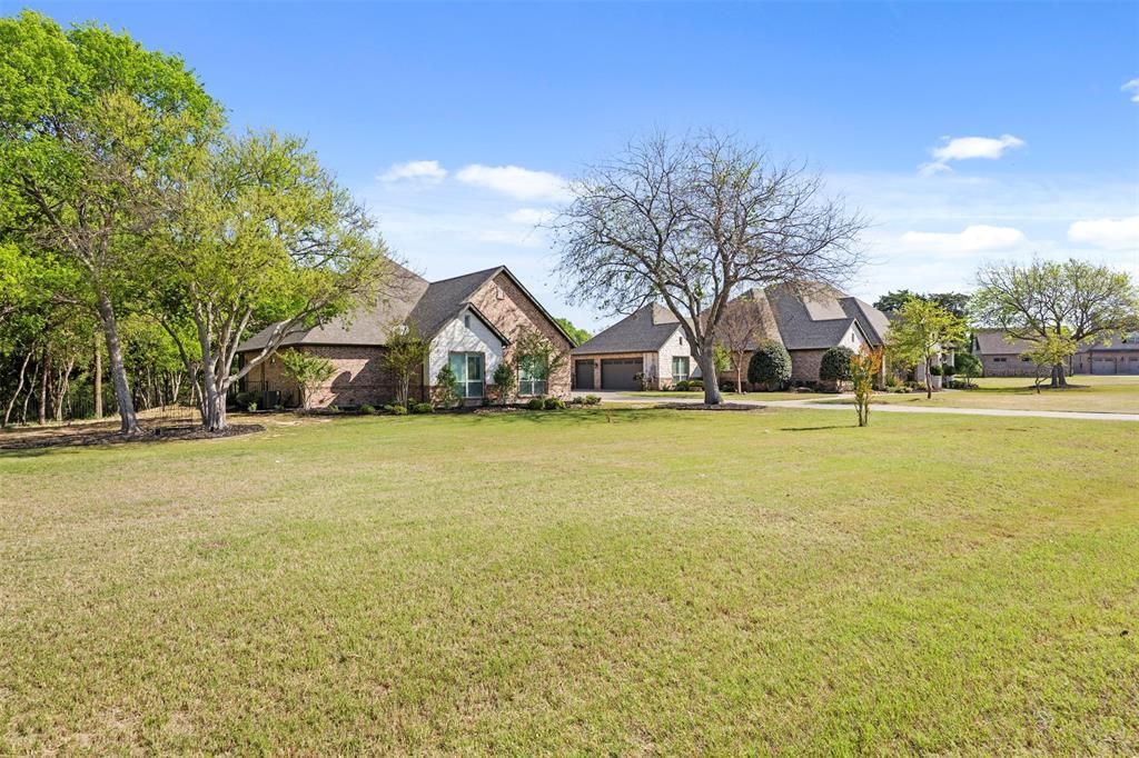 Set within the gated community of Maypearl Hidden Hills, this exceptional estate offers refined luxury, privacy, and resort-style outdoor living on a beautifully treed homesite. The impressive Troy Priddy main residence spans approximately 4,048 square feet with 4 bedrooms, 4.1 baths, and a 3-car garage, featuring tasteful finishes and a spacious, functional layout designed for both everyday comfort and entertaining.The chef’s kitchen is equipped with premium appliances, a gas range, oversized island, and farmhouse sink, opening to inviting living spaces filled with natural light. A private owner’s retreat showcases a spa-inspired bath with walk-through shower, while the main level also includes a dedicated study with custom built-ins and coffered ceiling, generous guest accommodations, and a large utility room with abundant cabinetry. Upstairs, a game room or second living area with full bath provides flexible space for recreation or hosting.Outdoor living has been elevated with a custom resort-style pool built by Curry Pools, featuring a dramatic rock slide, grotto, and spa, all surrounded by an extended deck ideal for lounging and gatherings. An expansive outdoor living area includes a fireplace, full outdoor kitchen with grill and refrigerator, and ample space to entertain year-round. Beyond the pool, enjoy a fenced playground area, newly planted fruit trees, irrigated garden space, a whole-home generator, and full water filtration system.A beautifully finished 2,042 square foot guest home built in 2021 by Todd Dennis Custom Homes offers 2 bedrooms, 2 baths, and a 2-car garage, mirroring the quality of the main residence and providing ideal space for multigenerational living or extended guests. This remarkable property delivers luxury, versatility, and true estate living in one of the area’s most desirable gated communities.