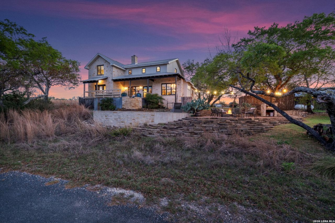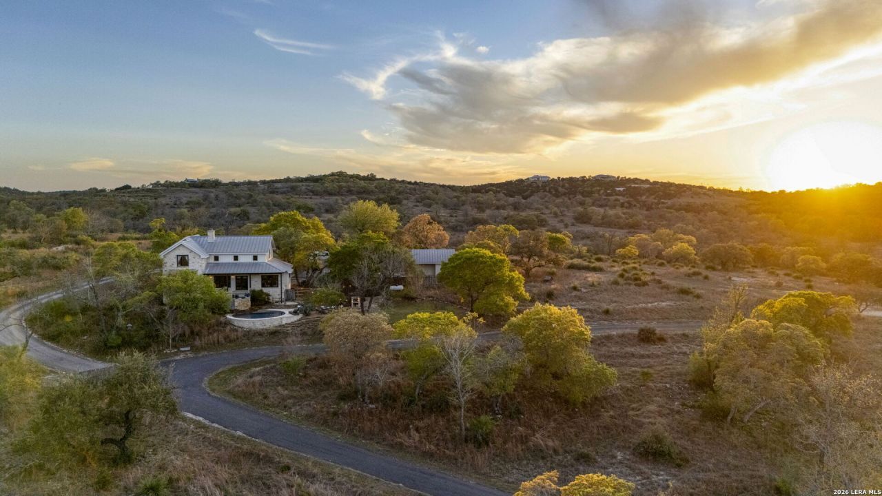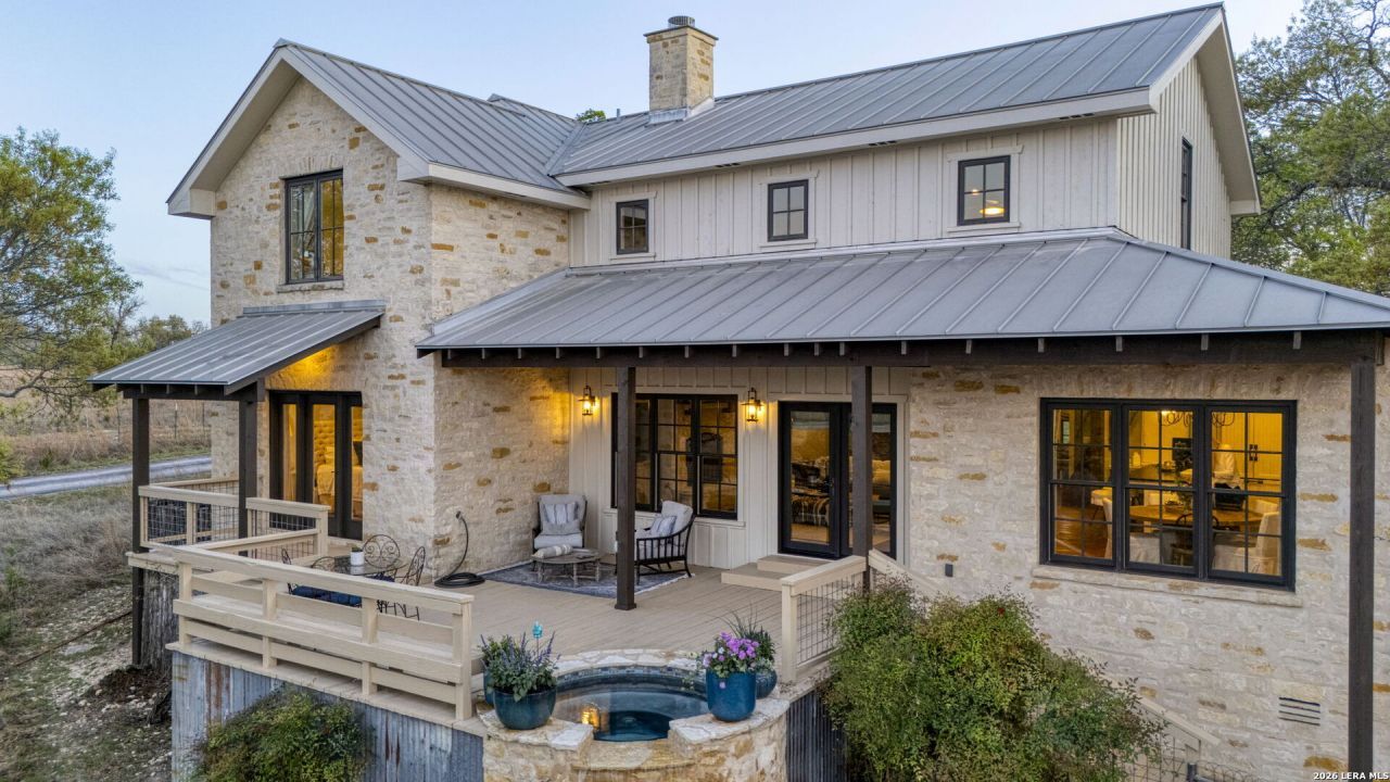Perched high above the Guadalupe River Valley in the prestigious Kendall Jackson community, this extraordinary 16.88-acre Hill Country estate is a rare offering crafted by award-winning builder Richard Laughlin, founder of Laughlin Homes + Restoration. Established in 1984, Laughlin Homes is known throughout the Texas Hill Country for building truly custom residences - never replicating a design and never compromising on craftsmanship. This home is a one-of-one creation, meticulously curated with hand-selected materials and artisan finishes throughout. Spanning approximately 2,800 square feet, the main residence features 3 bedrooms, 2.5 baths, a loft, flex space, and expansive open-concept living framed by soaring ceilings and panoramic views. The level of detail is exceptional: Hand-selected reclaimed barnwood from Oklahoma and Kentucky Three-inch thick double-wide solid wood floors Custom hand-fit doors on every entry and closet A sculptural limestone fireplace with champagne bottle-inspired chimney Soapstone island paired with hand-selected granite countertops Shaws original farmhouse sink Gas cooktop with electric oven Custom antique cabinet repurposed as an oversized pantry Built-in breakfast area cabinetry with pull-outs Vintage dime-store inspired stools bolted to the island Laundry chute for convenient downstairs access Two built-in desk/workspaces upstairs The primary suite offers private patio access and long-range views. The spa-like bath, remodeled in 2018, features quartzite countertops, designer tile, seagrass flooring, a freestanding soaking tub, double vanity, and custom built-in cabinetry in both the closet and bedroom. Outdoor living is equally impressive. The recently repainted exterior enhances its timeless Hill Country appeal. A chip-seal circular drive lined with mature oak and cherry trees leads to a heated custom pool with integrated spa, standalone hot tub, expansive patio, outdoor shower, dry-stacked stone grill with wood storage, and firepit gathering space - all positioned to capture breathtaking valley views. Hundreds of trees across the 16+ acres have been meticulously trimmed and manicured, creating a private, park-like setting surrounded by large ranch properties. Nice barn great for horses, 4-H or equipment storage. Horses allowed. Wildlife exemption in place. Seasonal creek and gently rolling terrain. Additional features include: Private 1 bed / 1 bath detached guest suite Spacious workshop and barn 20 GPM private well 5,000-gallon water reservoir Three water heaters including Insta-hot Two central HVAC systems Metal roof Pier & beam foundation Oversized detached two-car garage plus two-car carport Located minutes from Comfort and IH-10 with convenient access to Boerne, Fredericksburg, Kerrville, and San Antonio, this estate offers serene Hill Country living without sacrificing ac