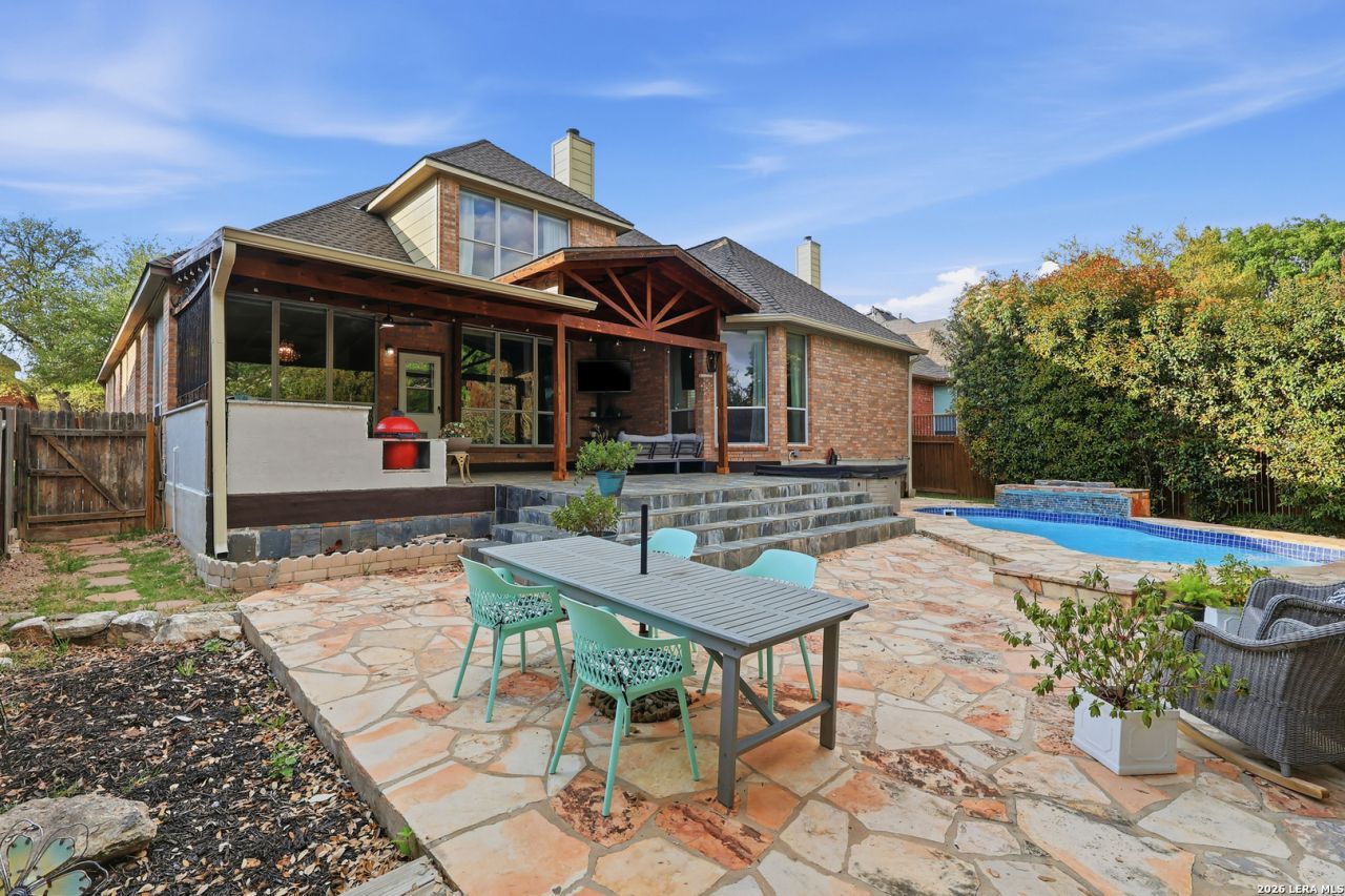 ***OPEN HOUSE Saturday April 4th from 1pm-3pm***Beautifully updated home located in the quiet neighborhood of Cedar Creek South. Designed for comfortable first-floor living, this home features a dedicated office, formal dining room, and a spacious open-concept living area that flows seamlessly into a stylish, updated kitchen. Expansive windows fill the home with natural light and provide views of the inviting outdoor living space, perfect for entertaining. The kitchen showcases modern updates, a stylish backsplash, double ovens, and ample counter space for everyday living and hosting. All bedrooms are conveniently located on the main floor, with the primary suite privately tucked away. The updated primary bathroom and generously sized closet with custom built-ins offer both functionality and organization. Upstairs, youll find a media room and game room, ideal for relaxing or entertaining guests. Step outside to your private backyard retreat featuring a large covered patio, outdoor kitchen, sparkling pool, and hot tub. Conveniently located near schools, shopping, and dining, this home offers both comfort and accessibility.
