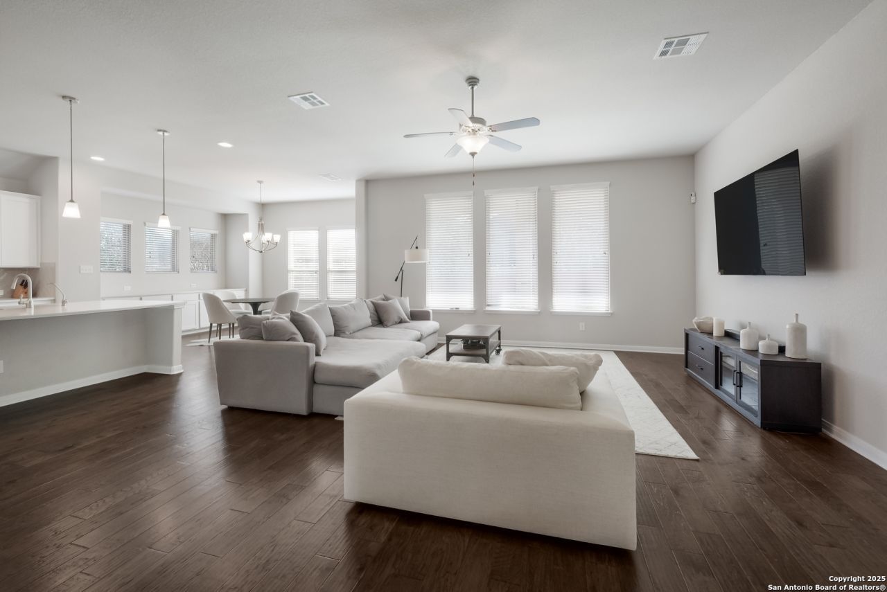 Step into luxury with this stunning 4-bedroom, 3.5-bath home that perfectly balances elegance and comfort. The interior impresses immediately with luxury wood and tile flooring that flows into a spacious living room designed for gathering. The heart of the home is the gourmet kitchen, featuring a large island and a sophisticated herringbone tile backsplash, ideal for culinary enthusiasts. Retreat to a large primary suite, a true sanctuary boasting a walk-in shower and separate soaking tub. Unique to this floor plan is an intimate outdoor enclosed courtyard, offering a private escape for morning coffee or evening relaxation. Located in the highly desirable 78260 zip code, this home offers an exceptional lifestyle with quick access to top-rated Comal ISD schools. Enjoy the convenience of being just minutes from major thoroughfares like Hwy 281 and Loop 1604, placing premier shopping and dining at The Village at Stone Oak and the JW Marriott Hill Country Resort within easy reach. The property sits on a large lot with a very expansive fenced backyard, perfect for outdoor activities, and includes a deep 2-car garage capable of tandem parking for a third vehicle. Ideally positioned for military professionals, this home offers a stress-free commute of under 30 minutes to Camp Bullis and Randolph AFB.