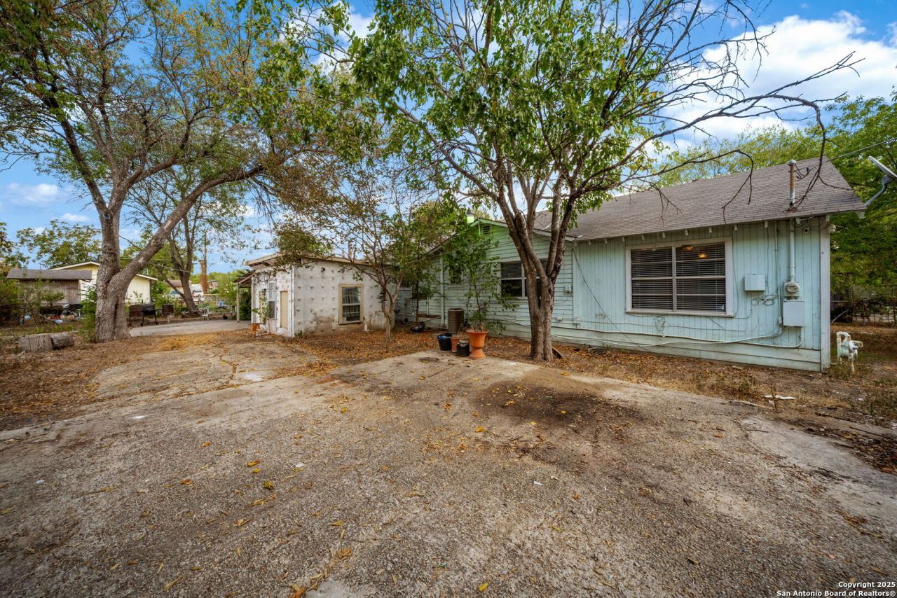 Set on a rare DOUBLE LOT just over a mile from Mission Espada and the Mission Trails, this spacious one-story home blends comfort, convenience, and room to grow. With three bedrooms (and the possibility of a 4th), three THREE FULL BATHROOMS -including an oversized bath designed for extra space or assistance-and two living areas, theres flexibility for every need. One of the living areas is expansive, perfect for gatherings or a multipurpose setup. The oversized primary suite offers a private retreat, while outdoors youll find mature trees, full fencing, and three storage buildings ready for your projects and storage needs. Quick access to Hwy 410 makes getting around the city easy.