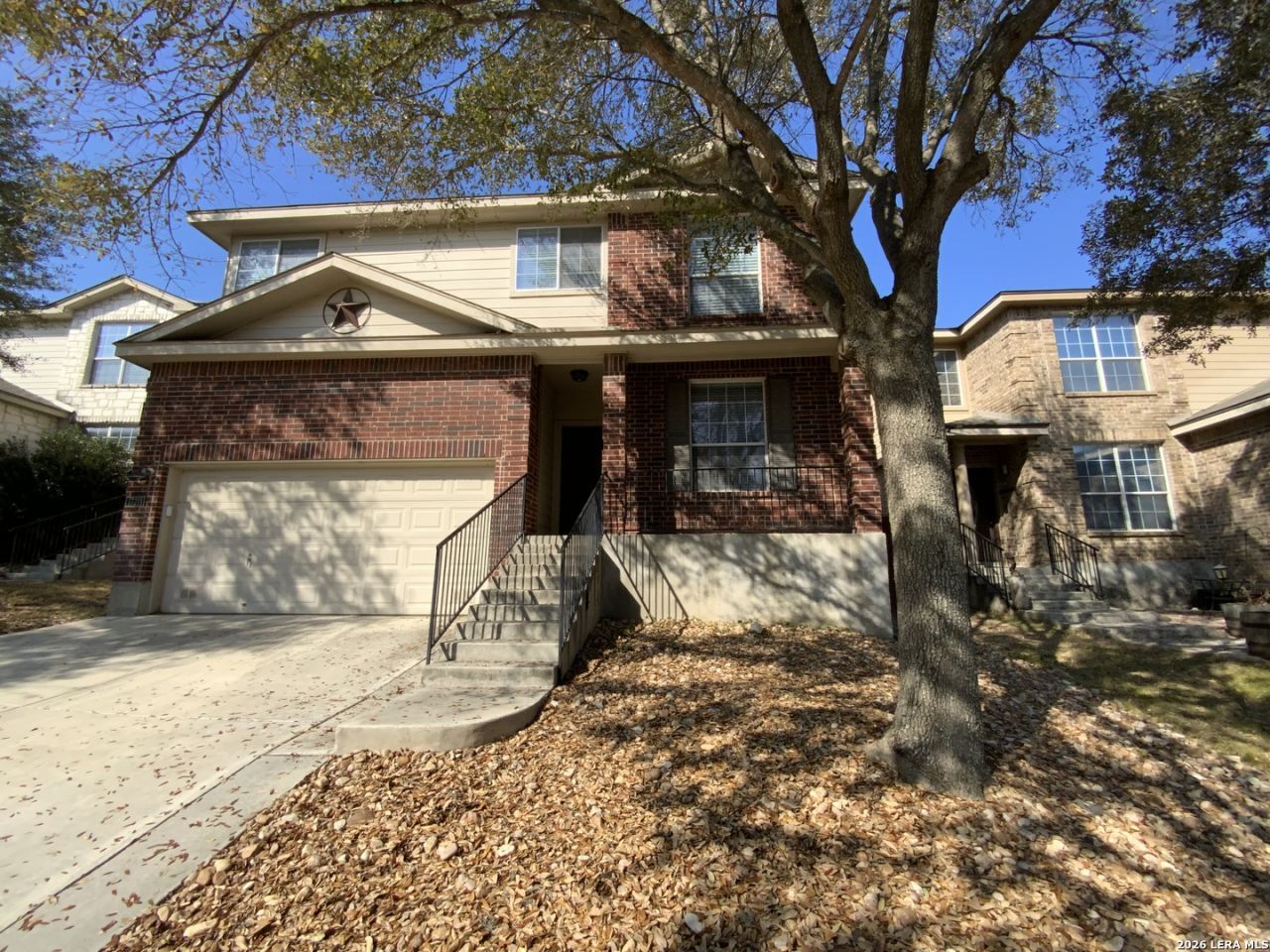 Convenient living in this very nice 4/2.5 bath home on cul-de-sac in desirable Steubing Ranch. Walking distance to Elementary and Middle schools. Carpet recently replaced. Open eat in kitchen has upgraded cabinets, Island and lots of storage! Large tiled Family room w/fireplace and separate formal dining room which can also be used as study. Primary bedroom is upstairs as well as all secondary bedrooms. Primary bath has separate tub/shower, double vanity and 2 walk in closets. Upgrades include full sprinkler system and extended covered patio. Low maintenance front yard. Community pool and playground. Easy access to 1604!