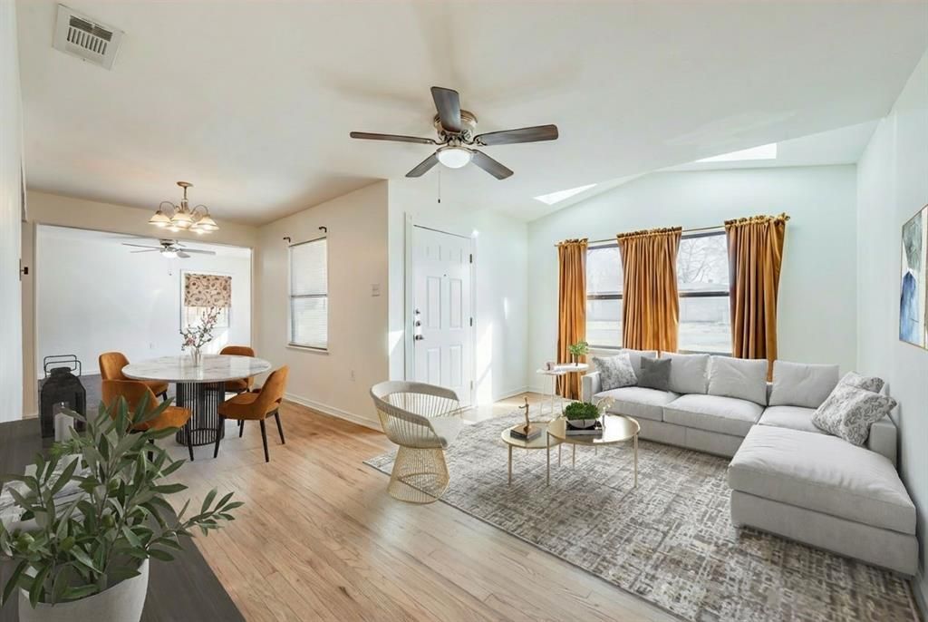 Charming home nestled in the heart of Garland on a desirable premium corner lot. Step inside to beautifully refinished hardwood floors, abundant natural light, and fresh interior paint throughout. The kitchen features updated cabinetry with frosted glass accents, generous counter space, ample storage, and a pantry. An oversized utility room and mudroom are conveniently located just off the kitchen. A spacious flex room with a charming wooden window seat offers versatility as a second living area, home office, or study. Two generously sized bedrooms showcase original hardwood flooring, while the updated bathroom includes a tub & shower combo, garden window, and linen storage. Enjoy outdoor living in the private backyard, complete with a newly refinished wood deck, fire pit, and plenty of space for entertaining. Tall privacy fencing lines each side, with a chain link fence along the back to preserve views of the greenbelt. A detached oversized garage provides excellent storage. Major systems including the HVAC and water heater have been replaced within the last 4 years.