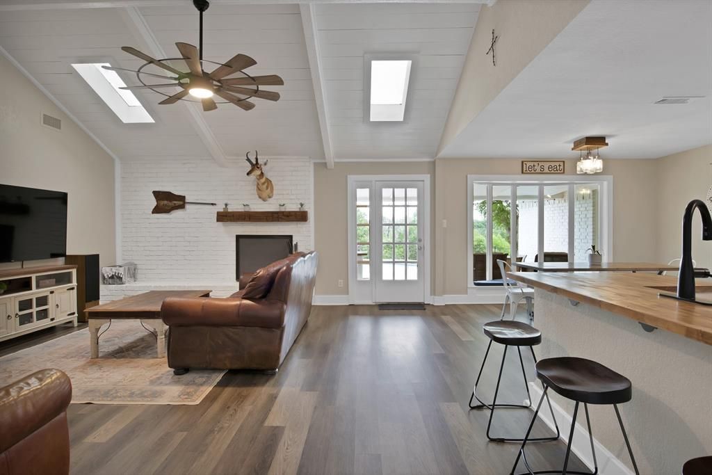 A beautifully updated country retreat just minutes from Lake Weatherford, this 4-bedroom, 2-bath home invites you to slow down, breathe deeply, and enjoy the kind of space that feels increasingly rare. Set on 2.61 fully fenced acres, it blends modern sophistication with the timeless charm of farmhouse living—creating a place that feels both refined and deeply comforting.Inside, natural light fills the open-concept living areas, giving every room a warm, welcoming glow. Modern-farmhouse finishes add character without sacrificing elegance, making the home feel instantly livable. The primary suite is a sanctuary designed for unwinding at the end of the day, with dual barn doors, beautifully crafted farmhouse vanities, two walk-in closets, and a newly remodeled walk-in shower that feels like a private spa. With a thoughtful split-bedroom layout, everyone has room to retreat and recharge.Step outside and the property opens up into a peaceful, private world of its own. An expansive deck overlooks the in-ground Gunite diving pool—perfect for summer gatherings, quiet morning coffee, or watching the sun set across your acreage. A 2-car garage, carport, and additional storage building offer flexibility for hobbies, equipment, or simply keeping life organized.Recent updates provide comfort and confidence: refreshed interior and exterior paint, new flooring, countertops, and fixtures (2020), a new roof (2021), water heater (2023), septic upgrades (2025), gutters (2024), and more. The land itself is a highlight—fully fenced and cross-fenced, featuring a seasonal pond—ideal for anyone who dreams of space, nature, or a little room to roam.This is more than a home; it’s a lifestyle—quiet mornings, open skies, and the freedom of country living paired with the convenience of being close to everything. It’s a place to gather, to grow, and to feel grounded.