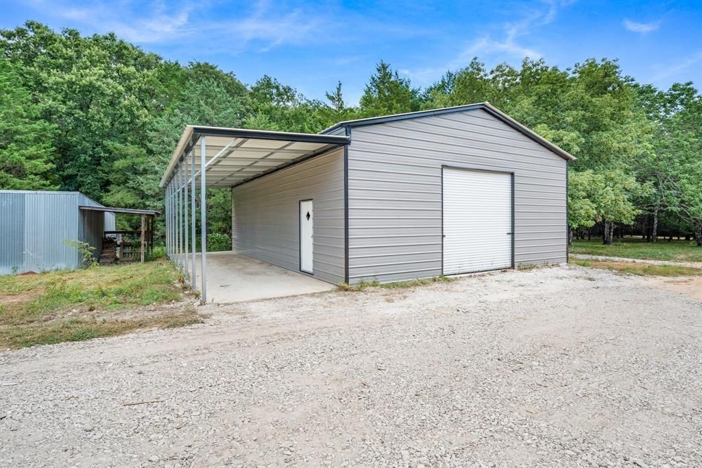 Private wooded 8.4 acres comes with a workshop and 3 bedroom, 2 bathroom house! A tree-lined drive brings you past a pipe-fenced entrance. You'll notice a front porch that is perfect for soaking under the shade of trees. Inside the vaulted living room, a stone fireplace with seating draws your attention in a cabin-flair interior. An open floor plan allows you to cook while entertaining guests or family. An extra large island with breakfast bar seating, granite countertops, stainless steel appliances, and access to the back porch compliment the kitchen. With a split bedroom layout, the primary ensuite includes a walk-in shower and garden jacuzzi tub. Additional bonuses are a new HVAC in 2022, new screws in roof in 2024, new septic pump in 2024, and recessed lights. A back porch provides a spot for grilling or watching the wildlife. The 30' x 40' workshop comes with concrete floors, 2 roll up doors, 10' x 10' roll-up door at the front and 9' x 8' roll-up door on the side, 1 walk-thru door, and a 10' x 40' covered lean-to area for equipment or vehicles. A shed could be used for a chicken coop, other farm animals or for more equipment storage. Make this wooded retreat your exclusive hideaway!