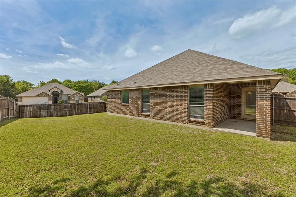 Corner lot • 4 bedrooms • Single-story layout Brick single detached home in Dallas offering 4 bedrooms, 2 full baths, 1,685 sq ft, and a 2-car garage. The floor plan opens from the foyer into a spacious living room with an adjacent dining area and an open kitchen with breakfast bar seating, ample cabinet storage, generous counter space, and black appliances. The primary suite is set apart from the secondary bedrooms and includes a large bedroom, walk-in closet, and ensuite bath with dual sinks, separate vanities, soaking tub, and separate shower. Three additional bedrooms and a full bath are positioned off the main hall, creating functional separation from the primary suite. Additional features include a separate laundry room, tile flooring in kitchen and bath areas, carpet in living and bedroom spaces, and multiple windows that bring natural light into the main living areas. Exterior features include a brick elevation, fenced backyard, covered patio, and corner-lot placement. Built in 2016, this home offers a practical single-level layout with open living spaces and a floor plan designed for everyday use. Floor plan available.