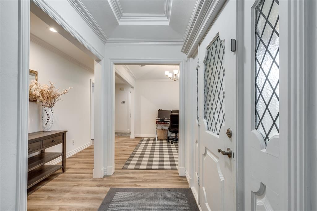 Welcome home to this stunning single-story retreat tucked away on a quiet cul-de-sac in the highly sought-after Highlands of Carrollton. Thoughtfully renovated and impeccably maintained, this home blends modern upgrades with comfortable, functional living. Step inside to a light-filled main living area featuring vaulted ceilings, recessed lighting, and a cozy gas fireplace—perfect for everyday living or entertaining. Nearly the entire home was renovated in 2022, including new luxury vinyl plank flooring and carpet in bedrooms. The beautifully redesigned kitchen is a showpiece, complete with custom soft-close cabinetry, quartz countertops, designer backsplash, upgraded fixtures, and a gas cooktop with smart appliances. It is also pre-wired for under-cabinet lighting, offering both style and flexibility. The spacious primary suite offers dual sinks, dual closets, and an oversized walk-in shower designed for a spa-like experience. A junior primary suite features a fully renovated en-suite bath with a walk-in tiled shower, soft-close cabinetry, quartz counters, and updated fixtures. The Jack-and-Jill bath has also been upgraded with dual sinks, quartz countertops, soft-close cabinets, modern fixtures, and a new water-efficient toilet. All three bathrooms include new high-efficiency toilets. Step outside to your private backyard oasis through new French doors—ideal for relaxing or entertaining. Enjoy the covered patio, sparkling pool with heating system, spa, and a built-in wired speaker system discreetly installed in the soffits. The landscaped yard is maintained by a smart-controlled Rachio irrigation system. Additional upgrades include a new energy-efficient HVAC system with integrated dehumidification (2022) and a smart thermostat. It is also wired with whole home speakers, inside and out. This exceptional home offers modern luxury, smart-home convenience, and an unbeatable location—all on one level.