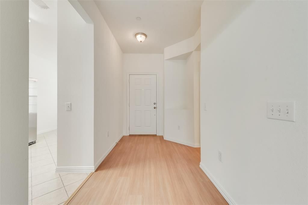 WELCOME HOME to Heritage Hill! This charming one-story townhome offers 2 bedrooms and 2 bathrooms with a thoughtful split floor plan and plenty of natural light throughout. The kitchen features stainless steel appliances, double oven range, brand-new microwave, touch-activated sink faucet, and fridge included, plus a bright breakfast nook with bay windows, perfect for morning coffee. The primary suite is spacious and includes a large walk-in closet, double sinks in a newly updated vanity, linen storage, and a large standing shower. Additional highlights include all-new luxury vinyl flooring, new carpet, fresh paint throughout, and a new water heater, making this home move-in ready. Enjoy low-maintenance living with the HOA maintaining the front and back yards, and step through the backyard gate to the community pool just steps behind the townhome. Conveniently located near I-35E and SH-121, with quick access to DFW Airport, shopping, and dining, this home combines comfort, style, and convenience in a perfect location. Schedule your Showing today!