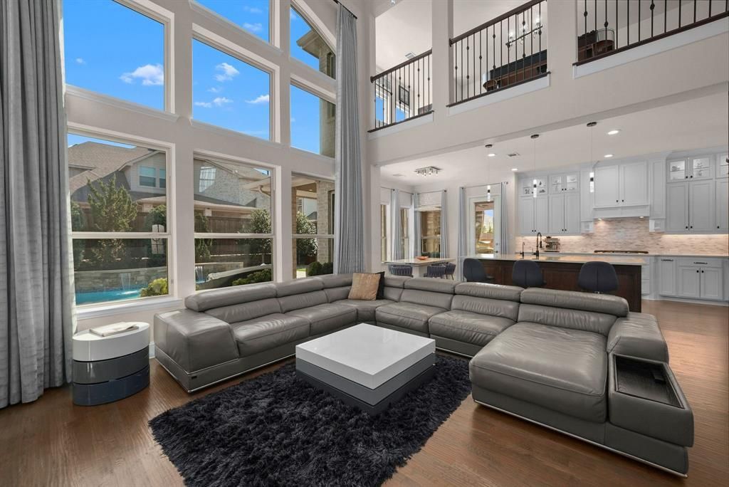 Thoughtfully designed and extensively upgraded, this stunning two-story home at 2353 Flat Creek offers exceptional space, functionality, and high-end finishes throughout. A striking brick and stone elevation with manicured landscaping and a front-entry driveway sets the tone for what awaits inside. The open foyer features rich wood flooring, a sweeping staircase, and seamless flow into the main living areas. The main level showcases a private study with built-ins and double doors, an elegant dining space with accent wall detailing, and a spacious living room highlighted by soaring ceilings, abundant natural light, and a stone-surround fireplace. The chef’s kitchen is equipped with quartz countertops, a large island, KitchenAid appliances including double ovens and gas cooktop, farmhouse sink, walk-in pantry, and designer lighting, all opening to a bright breakfast nook with backyard views. A generously sized primary suite offers a relaxing retreat with backyard views, custom finishes, and a spa-inspired bath featuring dual vanities, soaking tub, oversized walk-in shower, and a fully built-out closet. An additional bedroom with en-suite bath, utility room with built-in mud area, and multiple garage spaces—including EV charging—complete the first floor. Upstairs provides incredible flexibility with a large game room, additional open living space, and a fully equipped media room. Secondary bedrooms are well-sized with ample storage, including a Jack-and-Jill layout and an additional full bath. The backyard is an entertainer’s dream, featuring a covered patio with fireplace, built-in outdoor kitchen, mounted TV, and fans. The resort-style heated pool and spa with water features, putting green, and thoughtfully designed landscaping create a private outdoor oasis. Phillips Creek Ranch is a peaceful, family-friendly neighborhood in Frisco, TX, known for its well-maintained homes, excellent schools, and community amenities including parks and pools.