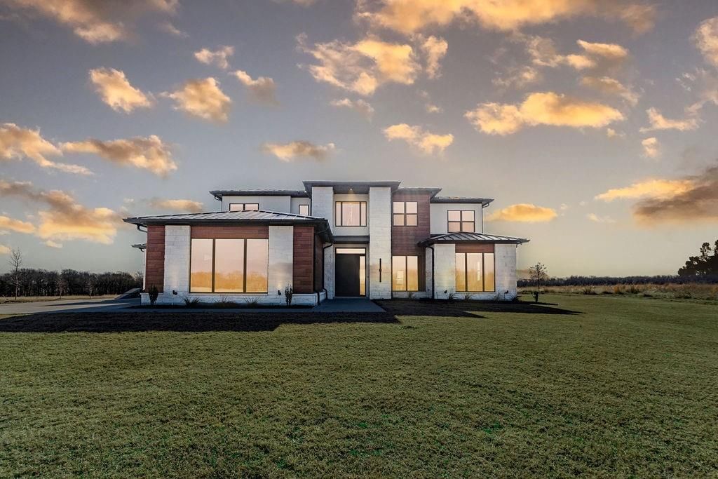 Set across 163 breathtaking acres of rolling East Texas countryside, this exceptional transitional-style custom home blends refined architecture with the freedom and privacy of expansive land ownership.Spanning over 4,700 square feet, this 5 bedroom, 4 and a half bath residence was thoughtfully designed with clean lines, natural textures, and timeless finishes. Rift-sawn white oak cabinetry with soft close, honed stone surfaces, solid-core 8-foot doors, and Don Young black aluminum windows create a warm yet modern aesthetic filled with natural light. The chef’s kitchen is both striking and functional, featuring premium Monogram appliances, a dramatic waterfall island, and seamless flow into the living and dining areas.A 12-foot sliding glass wall opens to an outdoor living space designed for year-round enjoyment, complete with a fireplace and views of the resort-style pool and surrounding acreage. Whether hosting gatherings or enjoying quiet evenings under the Texas sky, the indoor-outdoor connection feels effortless.Built with performance and longevity in mind, the home incorporates full foam insulation, high-efficiency multi-zone HVAC, tankless water systems, engineered slab construction, and fire suppression—offering both comfort and peace of mind. Technology infrastructure includes whole-home WiFi, hardwired connectivity, integrated sound, and a security system.The property is equally equipped for work and recreation. A fully insulated 30x50 shop with extended lean-tos and RV hookup adds flexibility for equipment, hobbies, or future expansion. The acreage is fenced and gated, with multiple access points and additional pond features on the homesite side.This is a rare opportunity to own a fully engineered private ranch estate where thoughtful construction, understated luxury, and wide-open Texas land come together in one extraordinary offering. 163cooper.com
