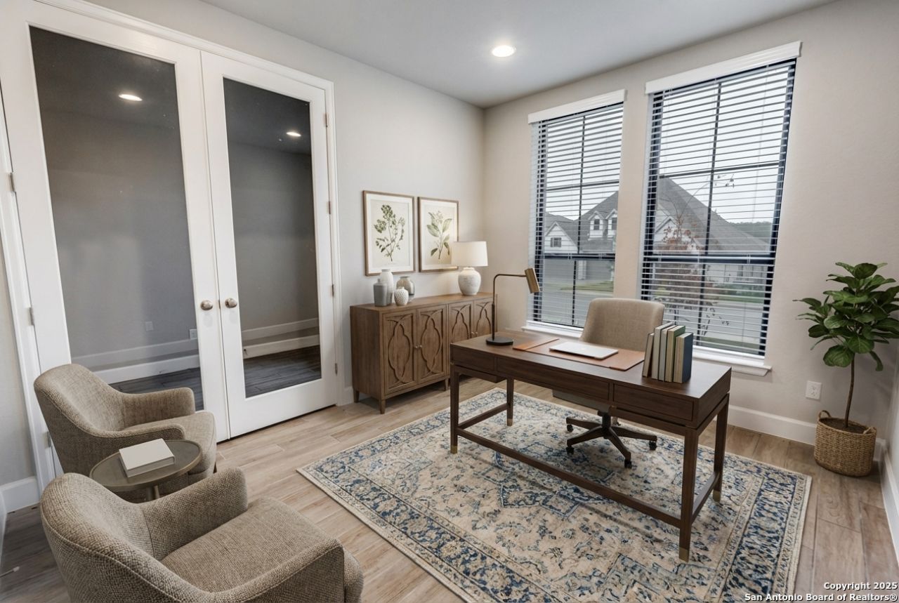 Experience luxury Hill Country living in the highly sought-after Cibolo Canyons community, just minutes from the renowned JW Marriott TPC Golf Resort. This exceptional two-story home offers elegance, comfort, and thoughtful upgrades throughout. A breathtaking curved staircase welcomes you into the grand entryway, with glass French doors leading to a private home office. The formal dining room features a stylish accent wall, adding sophistication and warmth. The spacious family room showcases a soaring two-story ceiling, a striking accent wall, expansive picture windows that fill the home with natural light, a wood-mantel fireplace, and sliding glass doors that create seamless indoor-outdoor living. The chefs kitchen is designed for both beauty and function, featuring a large island with breakfast bar, upgraded countertops, and a 5-burner gas cooktop. Retreat to the luxurious primary suite with a 12-foot ceiling and a spa-inspired bath offering dual vanities, a garden tub, a separate glass-enclosed shower, and a walk-in closet upgraded with custom shelving and direct access to the utility room. A secondary bedroom with full bath serves as a convenient downstairs guest suite. Every room in the home is enhanced with added ceiling fans, ensuring comfort year-round. Step outside to an upgraded patio with stunning pavers, perfect for relaxation or entertaining. Additional exterior features include added gutters and access to over 6 miles of dog-friendly walking paths throughout the community-ideal for morning walks or evening strolls. The property also includes a functional mud room off the spacious 3-car garage with extra storage space, and the added benefit of no city taxes. Located in the beauty of the Hill Country with incredible views, exceptional amenities, and proximity to world-class golf and resort living, this home offers an unmatched lifestyle. Dont miss this opportunity-upgrades, comfort, and elegance abound in every corner.