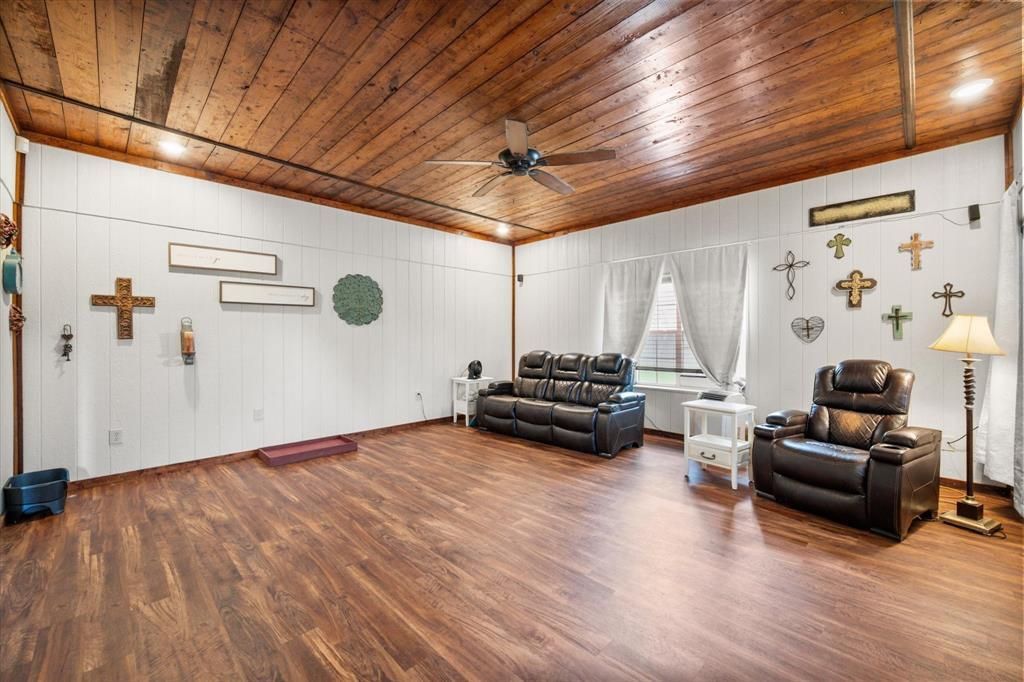Welcome to this charming barndominium nestled on over 1.5 acres in the desirable Fairfield ISD! This unique 2-bedroom, 3-bath home offers the perfect blend of rustic charm and modern comfort. Step inside to a cozy living area highlighted by beautiful wood ceilings that add warmth and character to the space. The inviting design continues into the spacious primary bedroom, also featuring stunning wood ceilings for a true retreat feel.Both bedrooms are generously sized and include private ensuite bathrooms, providing comfort and privacy for family or guests. A third full bathroom adds extra convenience for visitors. Outside, the fenced acreage is ideal for animals, hobbies, or simply enjoying wide-open country living.Whether you're looking for a peaceful homestead or a weekend getaway, this property offers endless possibilities with room to grow. Don’t miss your chance to own a slice of country living with charm and functionality!