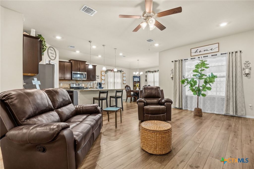 Move-in ready, well maintained single-story home offering approximately 1,508 sf with 3 bedrooms, 2 bathrooms, and a 2-car garage. Open floor plan features a dedicated dining area that flows into the kitchen and family room, creating an ideal space for everyday living and hosting. The private primary suite includes a bay window, dual vanities, and a spacious walk-in closet. Additional highlights include 9-ft ceilings, granite kitchen countertops, and stainless steel appliances.**Refrigerator does not convey** Smart home features through the home allows convenient control of lights, thermostat, and locks from your smartphone. Generous sized yard with a covered patio. Conveniently located near U.S. Highway 195 for an easy commute to Austin, Killeen?Fort Hood Regional Airport, Texas A&M University?Central Texas, H-E-B, and more. The perfect balance of modern comfort, style, and convenience.