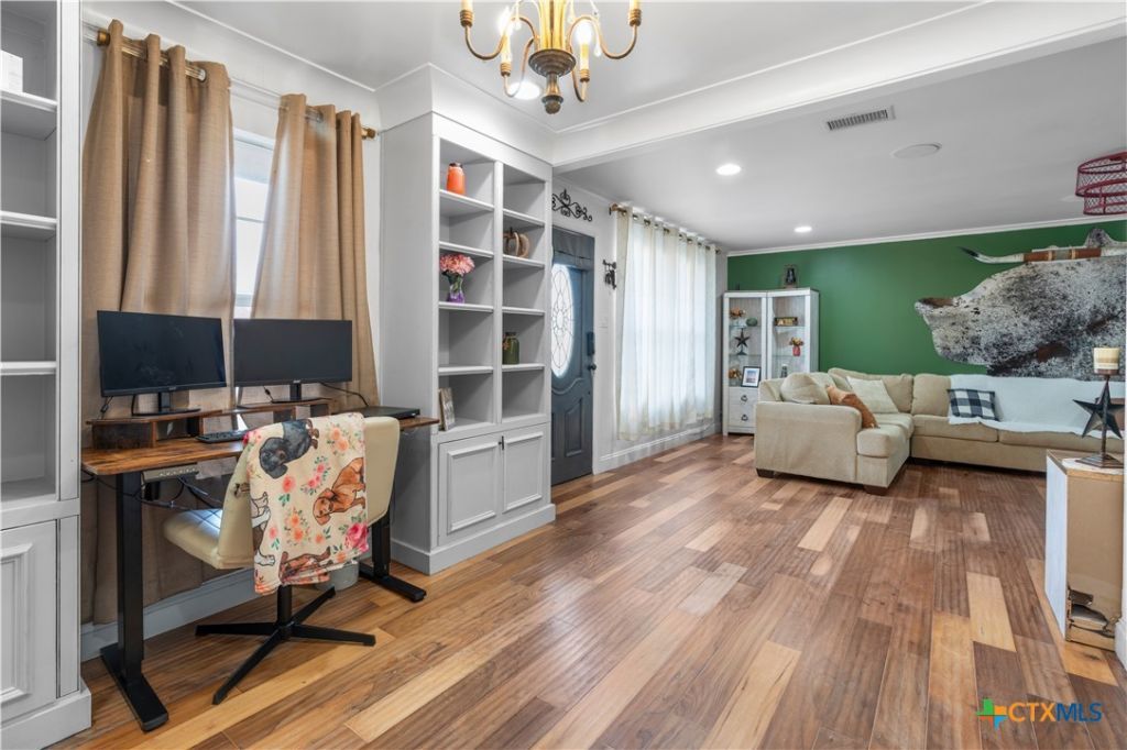 This beautifully updated 3-bedroom, 2-bath rock home was remodeled in 2018 with an exquisite owners vision and offers stunning custom finishes throughout. The show-stopping kitchen features custom cabinetry, refurbished marble countertops from a historic bank, stainless steel appliances, and a stone farmhouse sink. A versatile flex room with built-ins is ideal for an office, dining, homeschool, or playroom, and a hidden secret closet in hall adds unique charm. Designer lighting and gorgeous wood flooring elevate the living spaces, while the guest bath has custom cabinetry and the primary bath boasts a claw-foot soaking tub. There is an existing drain located beneath the clawfoot tub, providing the option for a buyer to convert the space into a spacious walk-in shower if desired. Step out from the spacious primary bedroom to a pergola-covered deck and outdoor grill overlooking a beautifully backyard with a home gym (easily converted back to a kennel or other space). The yard is fenced with black iron and chain-link. Major upgrades include a new inside and outside HVAC system installed May 20, 2025, and a tankless water heater replaced November 3, 2025. Conveniently located minutes from Fort Hood and local schools ? call today for your private tour!