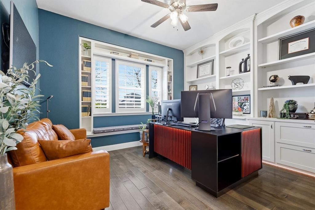 Beautifully upgraded CalAtlantic home in highly sought after Celina ISD featuring a dedicated office with custom built ins, engineered hardwood floors downstairs, and a thoughtfully designed floorplan ideal for working from home and everyday living. Plantation shutters throughout the downstairs add timeless style and natural light to the main living areas. The open concept kitchen offers exceptional storage and functionality with quartz countertops, a Whirlpool gas cooktop, striking glass mosaic backsplash, abundant cabinetry, and a spacious center island perfect for gathering. A large walk in pantry provides even more room to keep everything organized. The living room makes an immediate impression with soaring ceilings, abundant natural light, and a gas fireplace that creates a warm and inviting focal point. The first floor primary suite offers a peaceful retreat with a beautiful bowed window and built in window seat that provides additional storage. Dual closets offer generous space and everyday convenience. Upstairs, a spacious game room provides a second living area so everyone has room to relax. One of the secondary bedrooms includes its own ensuite bath, making it an ideal setup for guests, older children, or multi generational living. Large storage closets throughout the home provide additional organization space. Three car garage with plenty of storage and epoxy floors. Outdoor living is equally inviting with a 10 x 20 extended covered patio and a backyard with no direct neighbors behind you, creating a more private setting for relaxing or entertaining. Additional exterior improvements include French drains and a spacious three car garage. This home offers flexible living spaces, thoughtful upgrades, and a floorplan designed for the way families live, work, and gather today.