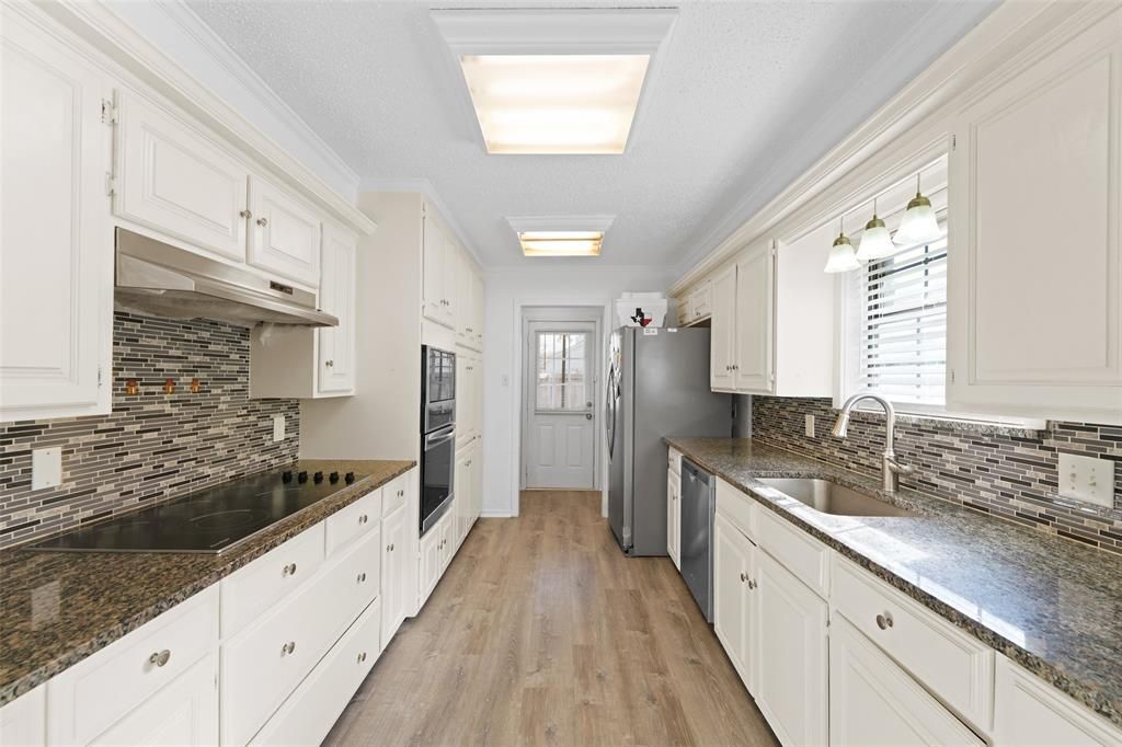 Welcome home to this beautiful brick home that is ready for its next owner! The open and inviting layout showcases vaulted beamed ceilings, a charming brick fireplace, luxury vinyl plank flooring, and plenty of natural light that fills the home with warmth.The galley kitchen features stainless steel appliances, granite countertops, upgraded fixtures, and generous cabinet space, along with a built-in dining hutch for extra storage.The split primary suite offers privacy with its own en-suite bath. Step outside to a fenced backyard with a covered patio perfect for relaxing evenings or weekend gatherings. A radiant barrier in the attic helps keep the home comfortable year-round. Conveniently located near major highways, shopping, and dining.