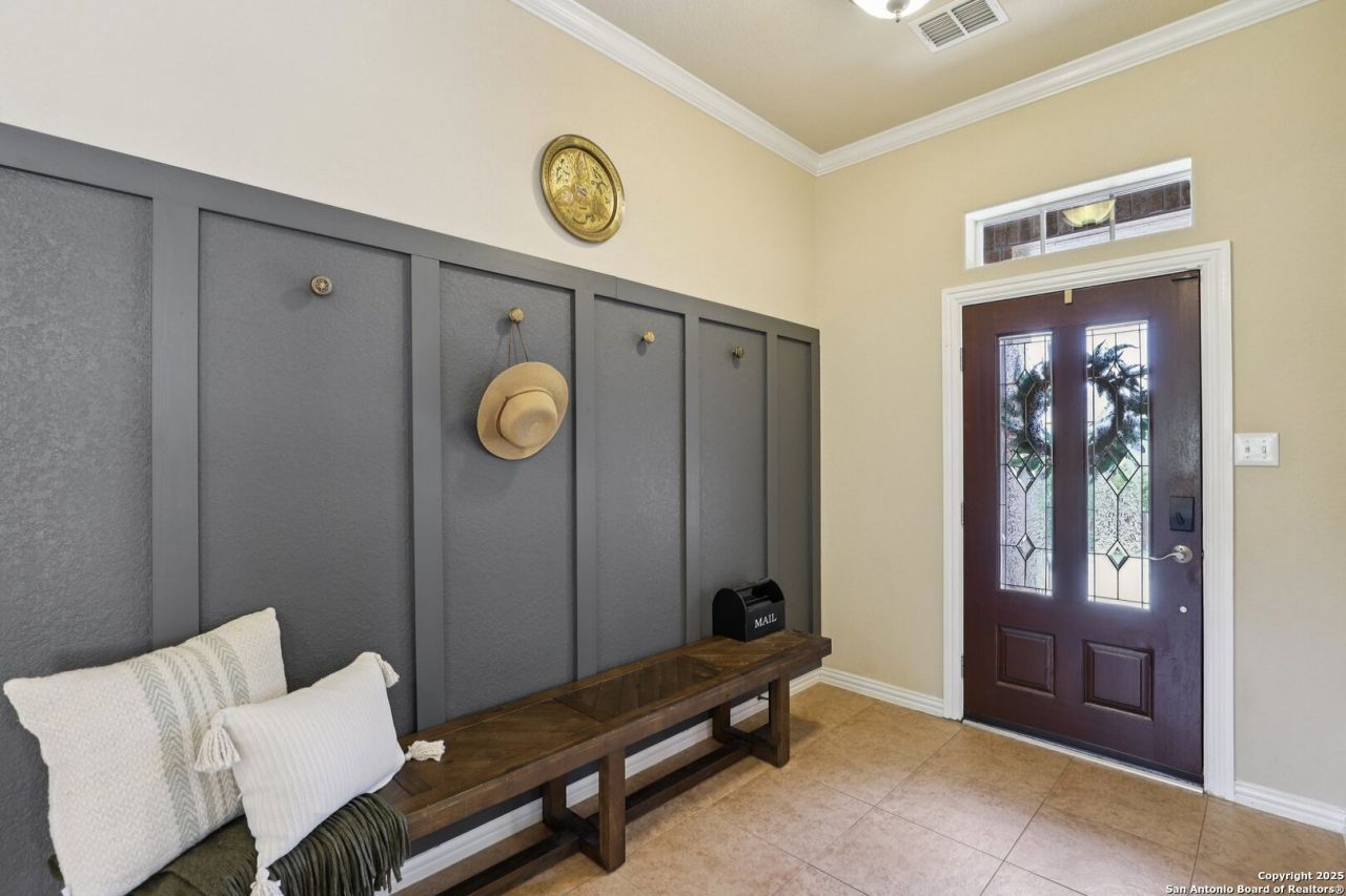 Welcome to this beautiful home tucked away on a quiet cul-de-sac in the highly desirable Indian Springs neighborhood of San Antonio and located within the acclaimed Comal ISD. Situated on an almost one-third acre lot, this spacious 4 bedroom, 3.5 bathroom home with a 3-car garage offers an exceptional blend of comfort, functionality, and modern efficiency. Step inside to find soaring ceilings and an open floor plan that creates a bright and inviting atmosphere throughout the main living areas. The thoughtfully designed layout includes a dedicated office space, a formal dining room, and a spacious living area that flows seamlessly into the kitchen-perfect for both everyday living and entertaining. The kitchen is a true centerpiece, featuring a large island, abundant cabinet space, and plenty of room for gathering with family and friends. Upstairs, youll find an additional living area, offering flexible space for a game room, office, play area, or second family lounge. One of the standout features of this home is its solar panel system with battery backup, providing energy efficiency and the peace of mind that the home can maintain power when needed. Enjoy outdoor living on the large covered patio, overlooking the expansive backyard with plenty of room to relax, entertain, or create your dream outdoor space. With its prime cul-de-sac location, spacious lot, flexible floor plan, and energy-efficient upgrades, this home offers the perfect balance of comfort, style, and practicality in one of the areas most sought-after communities.