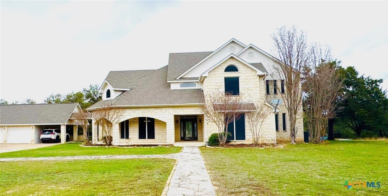 Ready to own your piece of Texas? This is it!! This impressive 4321 square foot two-story rock home rests on 57 acres of prime land, delivering a rare mix of luxury with peaceful country surroundings. The home offers four bedrooms with three full bathrooms plus a half bath. A spacious living area features soaring ceilings with a striking rock wood-burning fireplace, creating a warm inviting space. A flex room near the kitchen provides the perfect setting for a home office or formal dining. The grand primary suite serves as a private retreat with its own balcony, an ideal spot to enjoy morning coffee while watching native wildlife. The en-suite bathroom includes a large soaking tub, walk-in shower, separate dressing space, double vanities along with an oversized walk-in closet. Outdoors, a detached two-car garage plus a single carport offer plenty of parking. The land is fully game-fenced with a three-foot underground varmint barrier designed to keep wildlife secure within the property while deterring unwanted animals. Enjoy fishing for bass in the stocked tank, relaxing by the fire pit, exploring peaceful nature trails, preparing for the next hunting season. Experience panoramic views with abundant wildlife including white-tail deer, dove, turkey. Conveniently located off a paved county road, this property sits within an hours drive from Waco, Temple, Killeen with reasonable commutes to Austin, Dallas-Fort Worth, Houston.