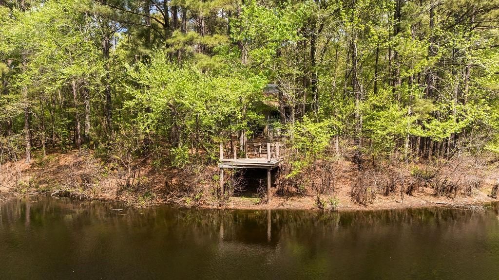 Adorable lake cabin with 3.026 acres in beautiful 4D Country Estates about 15 minutes south of downtown Winnsboro. The property sits on a heavily wooded lot with waterfront views of White Oak Lake and consists of two dwelling structures--a main house and studio efficiency apartment. Picturesque and infinitely relaxing, you will be among nature at its finest. The property was designed by a talented architect with clean, modern lines and super efficient floorplan. The main house is situated directly on the lake boasting 2 bedrooms and 1 full bathroom with 772 sq. ft. There is a primary bathroom on the first floor and second bedroom upstairs. The second dwelling unit is a studio efficiency apartment with approximately 327 sq.ft. and it sits right across the street still with lake views but not directly on the water. The main house is everything you envision for a lake property with laminate wood floors and solid pine tongue and groove walls along with tons of windows for breathtaking views of the lake. The studio efficiency offers a small open-concept kitchen off of the den area along with 1 full bathroom. There is plenty of room to accommodate both den and bedroom furniture in the open-concept space. 4D Country Estates is a fishing lake community offering 5 different lakes, a clubhouse, walking trails, boat ramps and a small public beach accessible to all residents. Fishing boats powered with troll motors are allowed but no water sports. Short-term rentals are NOT allowed and have been deed restricted for rentals less than 30 days at a time. This property is perfectly suitable for full-time living or used simply as a weekend getaway. The two dwelling units offer great flexibility to additional family or guests each with their own private space but still within close proximity.