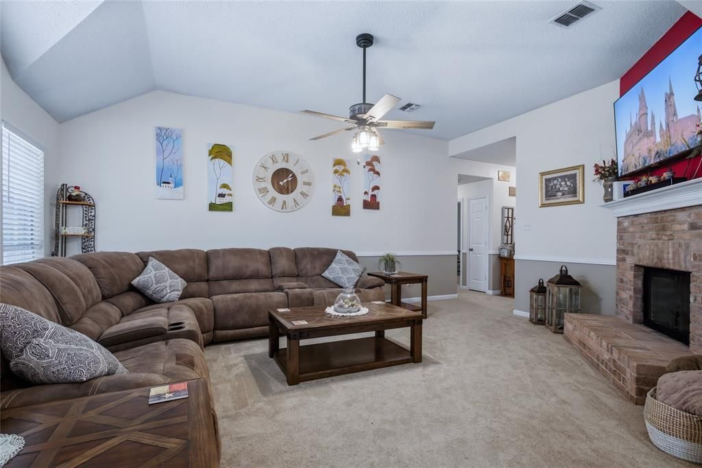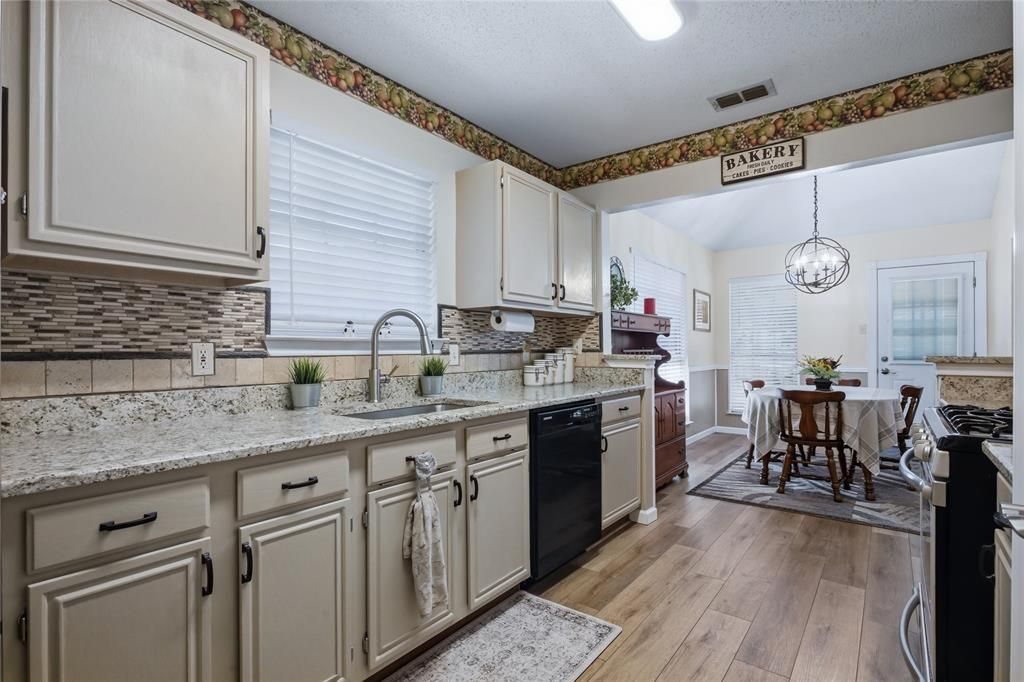 Step into this beautifully updated single-story home. The spacious living area brings comfort and warmth with a cozy gas fireplace...perfect for relaxing evenings. The kitchen offers a gas range, sleek granite countertops, and plenty of cabinets. Granite counters continue into the bathrooms, which adds an elegant touch throughout. The primary bathroom features a fabulous tile shower with a waterfall shower panel system. Step outside to a spacious patio with a pergola, creating the perfect setting for entertaining. Enjoy the built-in gas grill and convenient counter space. Great for hosting friends and family. This move-in ready home combines thoughtful updates and functional living spaces. Walking trails are nearby for a peaceful retreat.