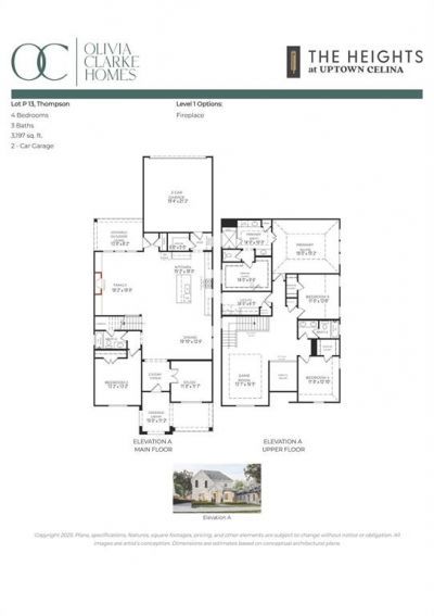 New construction by Olivia Clarke Homes in The Heights at Uptown Celina! The Thompson is a beautifully designed two-story home offering 3,197 square feet of stylish and functional living. With 4 spacious bedrooms, 3 bathrooms, a 2-car garage, a game room, and a dedicated study, this home is built for families who love to live, work, and play in style. The open-concept main floor sets the stage for connection, with the living, dining, and kitchen areas flowing together effortlessly, perfect for lively gatherings or quiet nights at home. The chef-inspired kitchen features an oversized island, pot and pan drawers, a built-in trash drawer, soft-close doors and drawers, quartz countertops, and stainless steel appliances—combining beauty and functionality for everyday living and entertaining. The private study is ideal for those who work from home, offering a peaceful space with a beautiful view out the front windows. The home is set well back from the street and faces a large HOA-maintained green space, making the lot feel exceptionally spacious. The large front patio is the perfect place for a porch swing and visiting with friends. The laundry room is generously sized and offers plenty of space for an extra refrigerator or additional storage. Upstairs, the luxurious primary suite provides a spa-like escape with a spacious walk-in closet and is joined by a large game room and two additional bedrooms with two full bathrooms, perfect for kids or guests. One guest bedroom is conveniently located downstairs, offering privacy and flexibility. With a layout that balances privacy and togetherness, the Thompson is designed for dynamic lifestyles and unforgettable moments. Don’t miss your chance to own this incredible home—schedule your showing today and experience The Heights lifestyle for yourself!