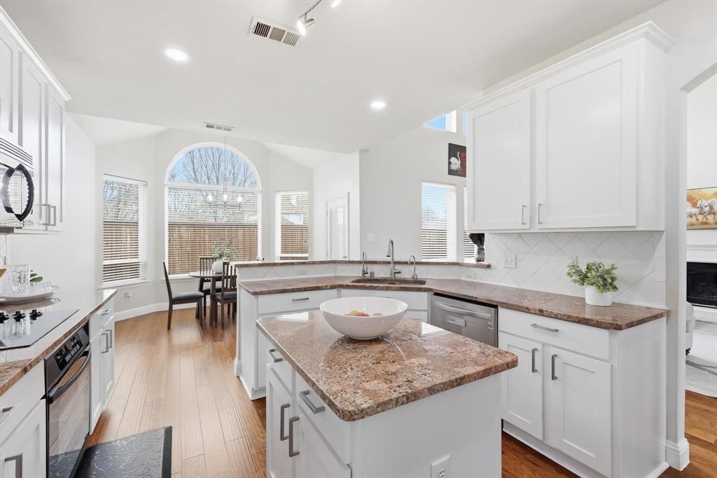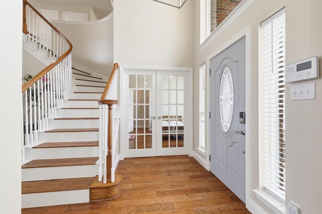 From the moment you arrive, the curb appeal stands out with striking dark brick complemented by updated, energy-efficient black-framed windows, giving the home a modern, upscale look.Step inside and you’ll immediately notice the beautiful interior paint and seamless flow of manufactured hardwood flooring throughout the first floor. The layout is both open and flexible, beginning with a formal living and dining area that can easily adapt to your needs. A dedicated study with French glass doors provides the ideal work-from-home space.The main living area is filled with natural light and opens directly into a well-appointed kitchen designed for both everyday living and entertaining. Features include granite countertops, white cabinetry with updated shaker-style doors, a new cooktop, instant hot water, and a built-in water purification system.The oversized primary suite is conveniently located on the main level and offers a private retreat with a sitting area and a beautifully updated ensuite bath featuring a frameless glass shower and updated cabinetry. Upstairs, you’ll find a spacious game room, three additional bedrooms, a Jack-and-Jill bathroom, and an additional full bath—providing plenty of room for family or guests.Step outside and enjoy a backyard designed for relaxing and entertaining, complete with an oversized patio, ample yard space, and pre-installed wiring for a future hot tub. The two-car garage includes a valuable side extension, perfect for a home gym, workshop, or additional storage.This is a thoughtfully updated home in a the popular Stone Hill Farms—offering both comfort and versatility for today’s lifestyle