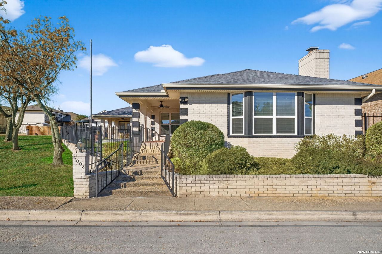 Welcome to 6003 Brook Falls, a beautifully updated one-story Windcrest garden home offering exceptional indoor-outdoor living. This expansive three-bedroom, two-and-a-half-bath residence spans 2,722 square feet and is thoughtfully designed for comfort and efficiency. With a lush open space to one side for added privacy, the home sits on an oversized lot and blends timeless design with modern upgrades. The home opens to a grand foyer with high ceilings and abundant light, leading naturally into the main living areas. The fully renovated kitchen features a striking 8-foot quartz island, abundant cabinetry, and upgraded finishes that flow seamlessly into the spacious family room. Anchored by a gas fireplace and complemented by a wet bar, the main living space is ideal for entertaining or everyday enjoyment. The privately positioned primary suite offers a true retreat with a spa-inspired bath showcasing customized double vanities, a walk-in shower, a soaking tub, and a large walk-in closet with custom shelving. Direct exterior garden access enhances the serene, resort-like feel. Secondary bedrooms are generously sized with roomy closets, providing comfort and flexibility. Recent improvements include 24 newly replaced windows, fresh interior and exterior paint, new flooring throughout, a mini-split system in the three-car garage, and paid-off solar panels, enhancing energy efficiency and long-term value. Outdoor living shines with newly added decking that connects double covered patios, creating a seamless flow through the garden for dining, lounging, and entertaining. The home is also pet-friendly, featuring doggy doors at both the exterior garage and utility room for convenient access. Ideally located near Windcrest parks, trails, shopping, dining, and major commuter routes, this home offers privacy, functionality, and modern appeal in a well-established community. A video walkthrough is available to showcase the layout, flow, and recent updates in greater detail.