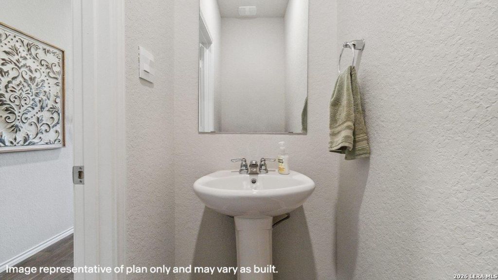 Step into The Grace floor plan in Blue Ridge Ranch in San Antonio, TX. This home showcases 2 classic front exteriors, full yard landscaping and irrigation and a 2-car garage. Inside this 4 bedroom, 2.5 bathroom home, you will find 1952 square feet of living space designed to meet your needs. The arched front patio opens to a grand foyer which then leads to a spacious living room. The living room blends seamlessly into the kitchen and dining area in an open concept floorplan. Your kitchen is built for the ultimate home chef and offers quartz counter tops, stainless steel appliances, and a kitchen island overlooking the living room. Dont forget a deep, single basin kitchen sink for convenience and ease. The staircase leads to the upstairs main bedroom suite, all secondary bedrooms, and your utility room. The Grace floor plan is ideal if you want to keep your entertaining space and private space separate. The upstairs main bedroom has an attached bathroom that includes a tiled walk-in shower, separate water closet and plenty of storage space with built-in shelving and a grand walk-in closet. Additional features of this home include sheet vinyl flooring in the entry, living room, and all wet areas, quartz countertops in all bathrooms and our HOME IS CONNECTED base package. Using one central hub that talks to all the devices in your home, you can control the lights, thermostat and locks, all from your cellular device.