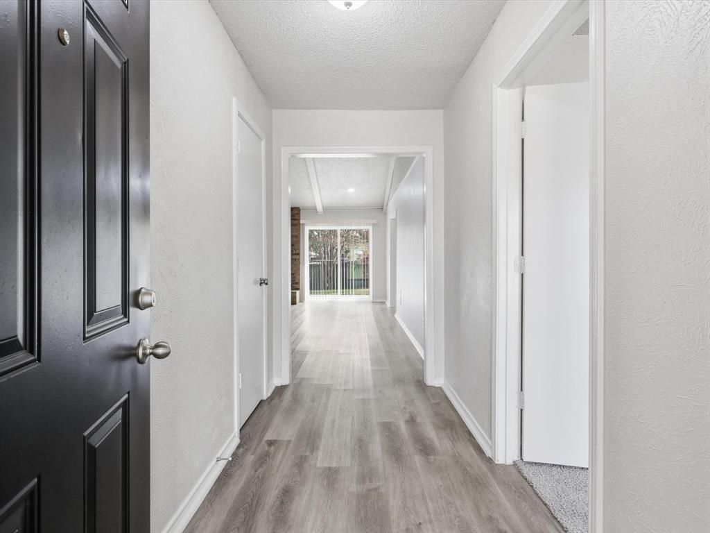 Situated on a quiet street in the heart of Lewisville, this updated 3-bedroom, 2-bath home offers comfort, space, and a functional layout. The welcoming living room features a wood-burning fireplace, creating a cozy focal point for everyday living. Fresh neutral interior paint, wood-like flooring throughout the main areas, and new countertops give the home a modern, refreshed feel. The spacious open kitchen is designed with versatility in mind, offering white quartz countertops, stainless steel appliances, ample prep space, and room to add an island or additional storage. Two generously sized secondary bedrooms compliment the oversized primary suite, which includes a walk-in closet and an updated ensuite bath with an updated walk-in shower. Step outside to a private backyard with plenty of room to relax, entertain, or enjoy outdoor activities. Conveniently located near parks, shopping, dining, and major roadways, this move-in-ready home delivers on location, updates, and livability.