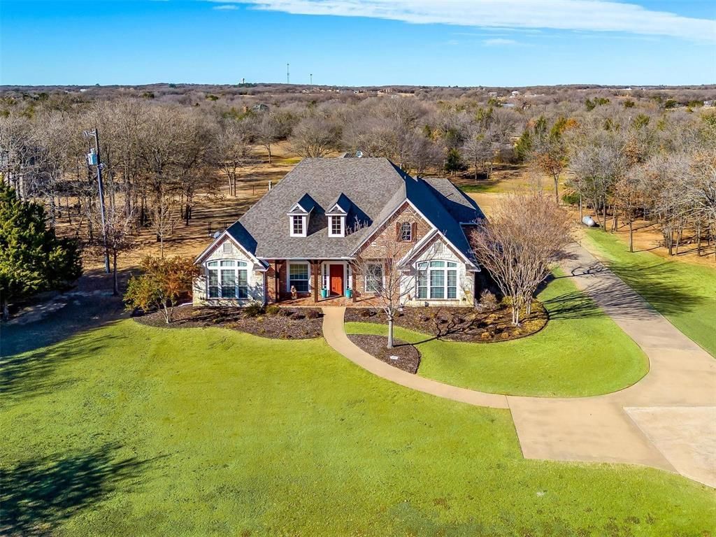 Situated on 2.56 acres at the end of a quiet cul-de-sac sets this immaculately maintained custom home overlooking a gorgeous, stocked pond. The open concept floor plan offers abundant space with 4 bedrooms, 2.1 baths, 3 living areas, office, media room and formal dining room. The gourmet kitchen features custom cabinetry, granite countertops, stainless steel appliances, breakfast room, walk-in pantry and an island! Stone fireplace with gas logs in the living room. The master suite overlooking the backyard boasts a separate sitting area, double vanity, jetted tub, and enormous walk-in closet! On the right wing of the home, 2 bedrooms and a full bath with double vanity, are located on either side of the den. Another bedroom sets on opposite side of the home. Upstairs, you will find a huge game room with plenty of natural light, media room, additional large storage closet, and half bath. Oversized 3 car garage with side entry. Laundry room with sink and room for fridge or freezer. Burleson ISD or Mansfield ISD, please verify with school!