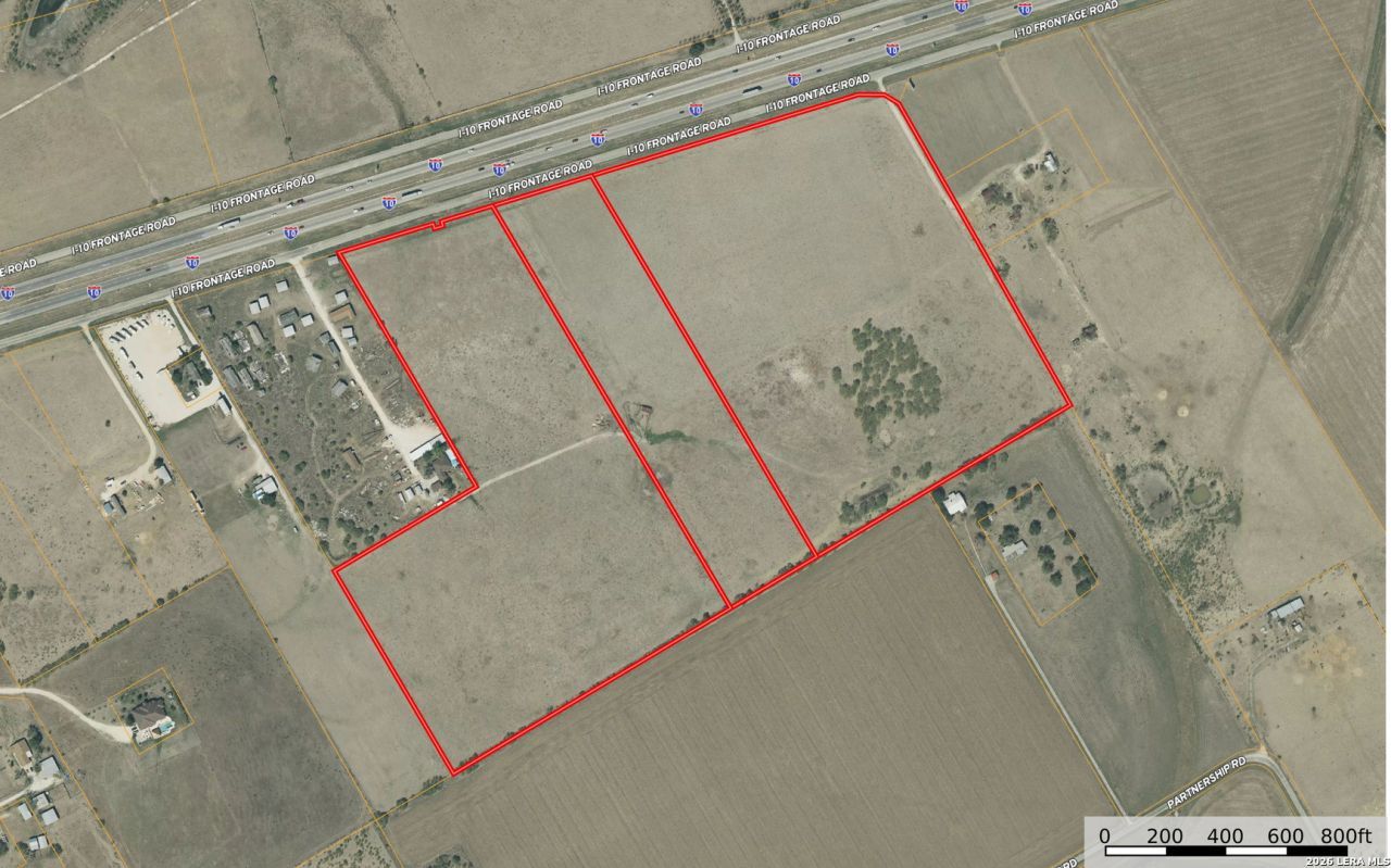 PRIME LOCATION for future development. There is 69.8462 +/- total acres available for purchase, with an estimated 1850 of highway IH 10 frontage. Located in Guadalupe County. High traffic area with lots of current growth. Only 24 Miles to San Antonio Airport, 67 Miles to Austins Bergstrom Airport, 176 Miles to Houston Airports, 284 Miles to Dallas/FT Worth airport. Land is already cleared and primarily level. There is a Possible option to purchase a smaller tract. ALL Boundary drawings are estimated ONLY. Final boundaries & total tract size will need to be determined by a new survey. Total acres are of 3 continuous tracts. NO existing survey. Boundary Drawings are per Guadalupe County Appraisal District and are deemed to be reliable but not guaranteed.