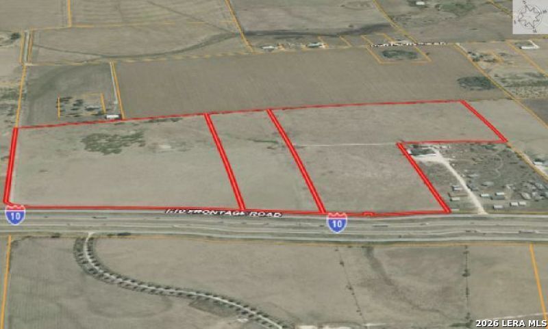 PRIME LOCATION for future development. There is 69.8462 +/- total acres available for purchase, with an estimated 1850 of highway IH 10 frontage. Located in Guadalupe County. High traffic area with lots of current growth. Only 24 Miles to San Antonio Airport, 67 Miles to Austins Bergstrom Airport, 176 Miles to Houston Airports, 284 Miles to Dallas/FT Worth airport. Land is already cleared and primarily level. There is a Possible option to purchase a smaller tract. ALL Boundary drawings are estimated ONLY.