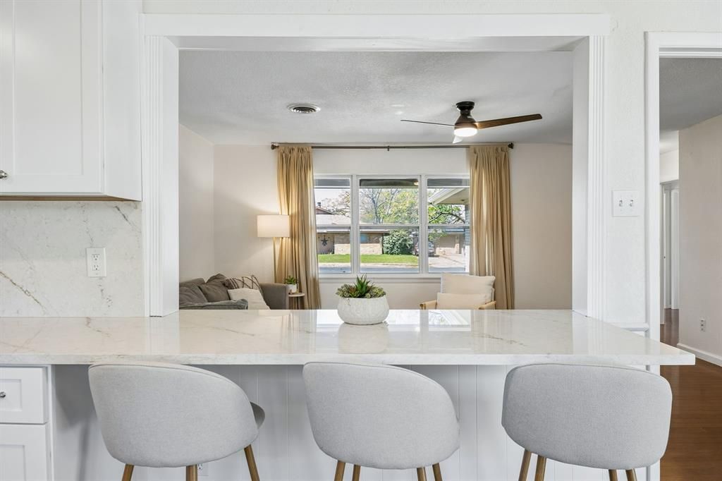 Welcome to 721 Danish Drive in Grand Prairie, a beautifully updated single-story home situated on a generous 0.24-acre lot, offering space, comfort, and modern upgrades throughout.Inside, this 1,424 sq ft home features a bright open-concept layout connecting the kitchen and living areas, creating an ideal space for both everyday living and entertaining. The fully renovated kitchen showcases updated cabinetry, modern countertops, and a pass-through island with additional seating, perfect for casual dining or hosting guests. A spacious dining area sits just off the kitchen, providing flexibility for larger gatherings.The home offers three comfortable bedrooms, including a private primary suite with an ensuite bathroom. Bathrooms have been tastefully updated with contemporary finishes, adding to the move-in ready appeal.Step outside to a large backyard with endless potential. Ideal for entertaining, play, or creating your own outdoor retreat.Conveniently located in Grand Prairie with easy access to major highways, shopping, dining, and entertainment, this home offers the perfect balance of modern updates and everyday functionality.