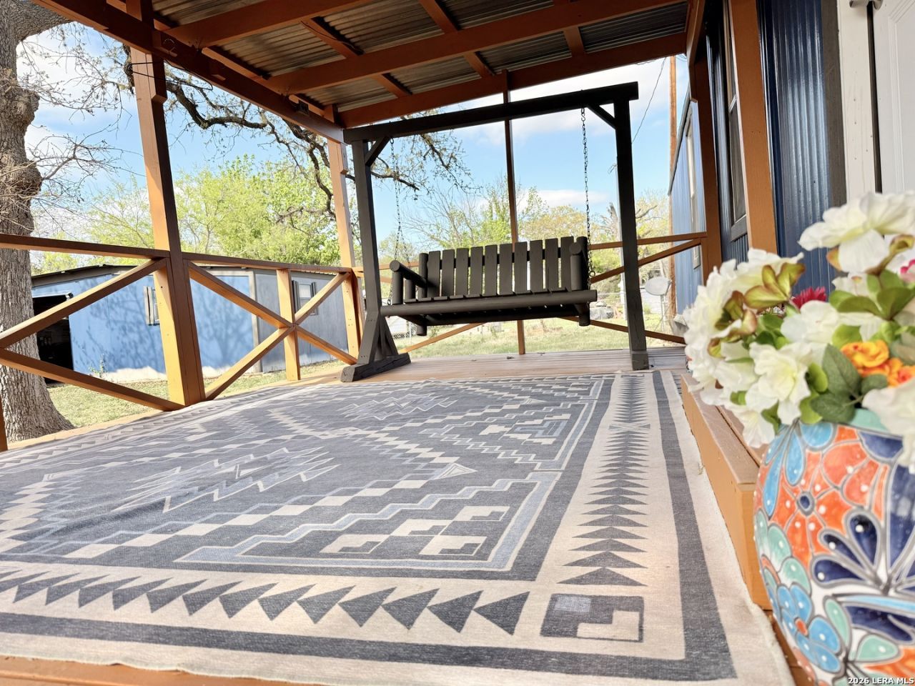 Charming Hill Country retreat on just over half an acre across two spacious lots! This 2-bedroom, 2-bath home has been recently upgraded and is move-in ready, offering comfort, functionality, and flexibility. The main lot features the home, a two-truck carport, large workshop, and well house-all shaded by beautiful, mature oak trees that create a peaceful, private setting. Enjoy quiet mornings or relaxing evenings on the covered back porch, complete with a tranquil porch swing. The second lot adds incredible value with two RV spots, each equipped with full hookups and serviced by a separate septic system-perfect for guests, rental income, or additional living space. Fiber internet is already in place, making it easy to stay connected while enjoying country living. Furniture may convey with sale, making this an easy turnkey opportunity. Only 5 miles from downtown Bandera and 20 miles from downtown Kerrville, makes this home ideally located.