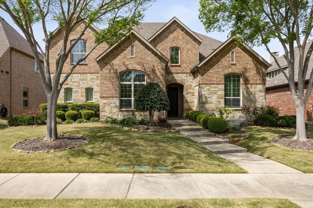 Beautifully maintained, one-owner home tucked away on a quiet interior lot, offering both privacy and charm. Nestled in one of Frisco's most desirable, established neighborhoods, Lawler Park! Built by Highland Homes, this home showcases quality craftsmanship and thoughtful design throughout. This stunning home features plantation shutters, a vaulted living room with a cozy fireplace, and gorgeous hand-scraped wood floors. Updates include freshly painted kitchen cabinets (2026), double ovens, and a microwave updated in 2024; a water softening system installed in 2024; new sod (Emerald Zoysia) installed in the front yard in 2024; two hot water heaters replaced in 2025; the fence stained in 2024; the AC condenser replaced in 2019; and motorized drop shades installed on the patio and breakfast room windows. Upstairs offers three bedrooms, a Jack-and-Jill bathroom, and an additional full bath, while the game room includes a built-in bar with sink and refrigerator. The laundry room is equipped with built-in cabinets, a sink, and space for a full-size refrigerator. Outside, motorized shades grace the patio and breakfast area, complemented by a covered patio with ceiling fan—perfect for relaxation. A 3-car tandem garage provides ample storage and parking, all within walking distance of top-rated elementary, middle, and high schools!