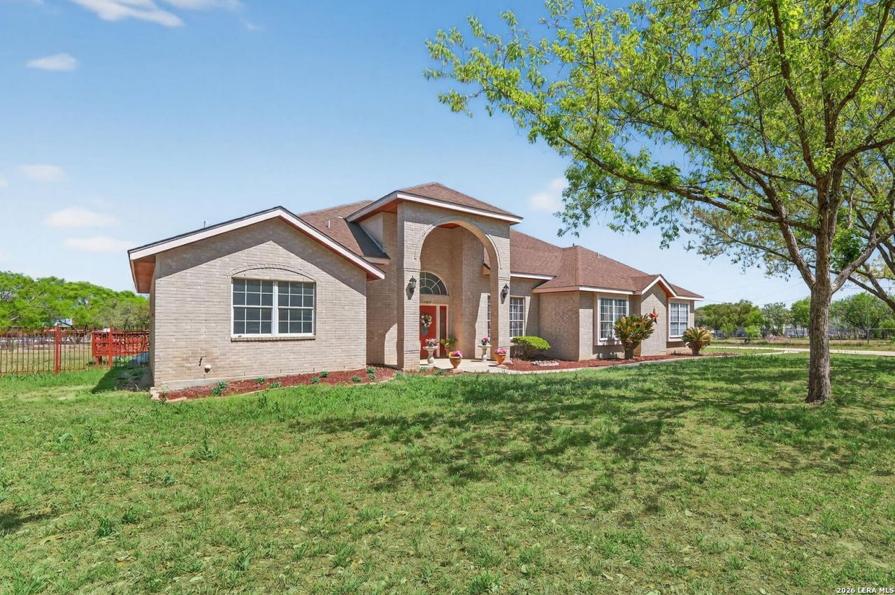 Spacious single-story home on an oversized lot with mature trees and wide open green space. Inside, soaring ceilings, abundant natural light, and multiple living and dining areas create a flexible layout ideal for both everyday living and entertaining. The large kitchen features extensive cabinetry, a center island, generous counter space, and flows seamlessly into the main living area with a fireplace and backyard views. The primary suite offers plenty of room to unwind with large windows, a spacious bath, dual vanities, and a walk-in closet. Secondary bedrooms are well-sized and positioned for privacy, with additional rooms that can easily function as guest space, a home office, or hobby area. Step outside to an expansive covered patio and oversized deck overlooking a massive backyard with endless potential for outdoor entertaining, gardening, recreation, or future improvements. Located on the east side of San Antonio in the quiet community of China Grove, the property offers convenient access to Highway 87, Loop 410, and I-37, making commuting into downtown San Antonio and surrounding areas simple. Nearby amenities include Brooks City Base, local dining and retail options along SE Military Drive, and outdoor recreation at Calaveras Lake and Braunig Lake, known for fishing, boating, and waterfront parks. Major employers within commuting distance include Toyota Motor Manufacturing Texas, Port San Antonio, Brooks City Base employers, and the growing logistics and distribution hubs on San Antonios east side. A rare opportunity to enjoy space, privacy, and country-style living while still being within easy reach of San Antonios major employment centers and amenities.