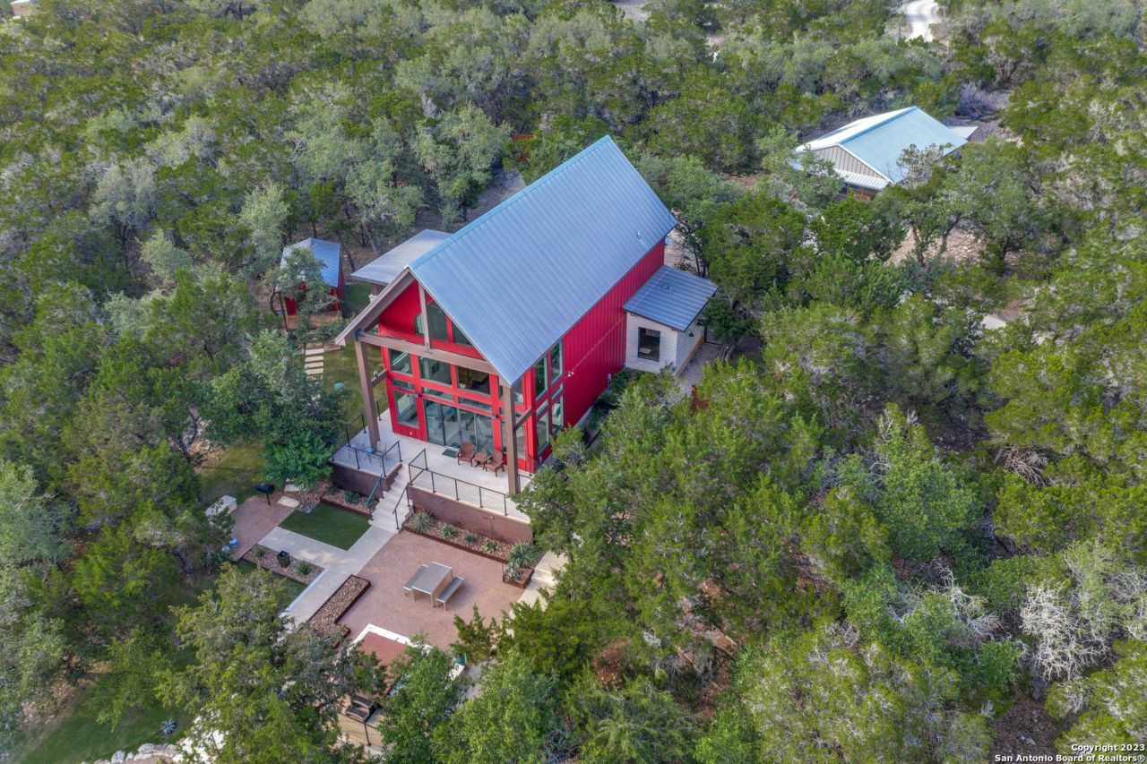 Big Texan Sky has everything you could want in a Hill Country home. Step inside to a stunning view- the floor to ceiling windows overlook 8.5, AG exempt acres. The main home consists of 2 bedrooms and 2.5 baths. The architect and sellers put careful thought into the design aesthetics when creating this Hill Country Modern home. With recent updates that include new flooring and a freshly painted interior. All furniture remains making this a convenient turnkey property. The style extends to the native landscaping and outdoor entertaining areas with a stone encased spa, perfect for relaxing to enjoy the sunset. Just below that sits a fire pit for hosting larger parties. The sellers have cleared a nature path for ease of exploration on the property. To call this 26 X 40 simply a garage, would be an understatement. Not only is there space for 3 cars, epoxy shield flooring, and an insulated and automatic glass garage door, but it also includes 22 X 14 living quarters appointed with a full bath with a spa like walk-in shower. This space includes a king size bed and full size couch. Your guest will not want to leave. Big Texan Sky has been operating as a vacation rental for several years with incredible reviews. This could continue as an income-producing property with potential to grow or work for anyone looking for a truly unique home surrounded by breathtaking views and peaceful quiet.