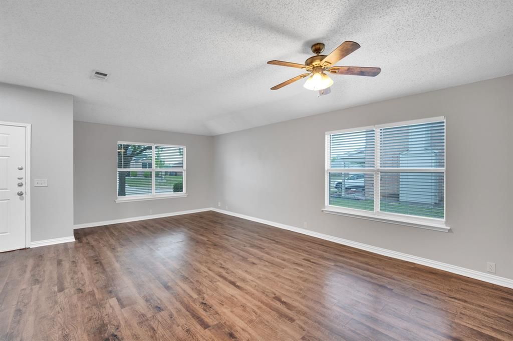 Discover the charm and comfort of this beautiful brick home only 20 minutes from downtown Dallas! With 3 bedrooms, 2 bathrooms and two living rooms. This home is thoughtfully designed for modern living. The open floorplan creates a welcoming flow, ideal for entertaining or spending time together. The kitchen features a central island that seamlessly connects to the living room, while a second living area offers versatile space for a home office, game room, or playroom. Wood-look luxury vinyl plank flooring runs throughout, providing a warm, sophisticated look without the upkeep of real wood. Outside, at almost a quarter of an acre, this property comes with a large backyard and offers plenty of room to relax or entertain while the 2-car garage adds convenience. Large storage shed in the backyard that also conveys with the property. Ceiling fans in every room! New 2-inch wood look blinds! Freshly painted and ready to move in! Enjoy living in a neighborhood with well-kept homes WITHOUT BEING IN AN HOA! Close to schools! Perfectly priced for today’s market, this home is a rare find for a great deal!