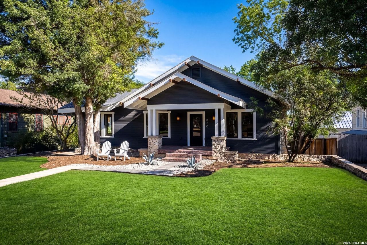 Nestled in the heart of prestigious Alamo Heights, this exquisitely renovated 1926 estate seamlessly blends historic character with elevated modern luxury. Reimagined in 2025, the 3276 sq ft residence offers 4 bedrooms, 4 full baths, and 1/2 bath on the 0.269-acre lot, with all bedrooms thoughtfully positioned on the primary floor for refined single-level living. A striking steel front entry opens to an expansive open-concept design featuring European white oak floors, a limestone fireplace, and two spacious living areas complemented by a formal dining room. The chefs kitchen is a true showpiece, appointed with Taj Mahal quartzite countertops, natural white oak cabinetry, a handmade reclaimed custom vent hood, imported antique galvanized island lighting from France, and premium Forno Alta Qualita appliances including a 60" refrigerator/freezer and 48" gas range. The primary suite offers a spa-inspired bath finished in travertine, while secondary baths showcase limestone tile and Taj Mahal quartzite surfaces. Downstairs, Saltillo tile flooring leads to a full bath with infrared sauna, a grand room with a kitchenette, wine fridge and deep well sink, and a hidden passageway to a private flex space ideal for a media lounge, cocktail retreat, or wine cellar. Modern infrastructure includes fully replaced electrical and plumbing systems, dual zone HVAC (gas and electric), low-voltage LED lighting throughout, a 75-gallon gas water heater, metal roof, and pier-and-beam foundation. Outdoor living is equally captivating with a wraparound balcony, sunroom, and a detached carport. A rare opportunity to own a masterfully restored architectural gem in one of San Antonios most coveted neighborhoods.