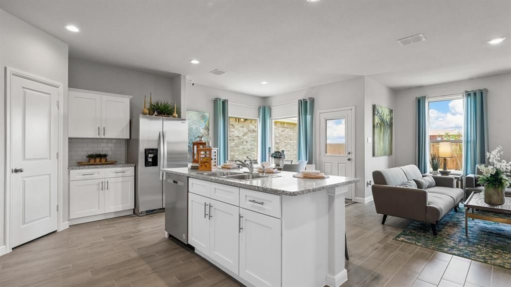 Available for a quick Move-in!! Gorgeous new D.R. Horton home in the Lankford Farms community located in Cleburne and Cleburne ISD! Complete and Move-in Ready! This thoughtfully designed single-story Starkville floorplan Elevation C, offers 4 bedrooms, 2 bathrooms, and a 2-car garage with an open-concept layout that connects the family room, dining area, and kitchen for a functional and inviting living space. The kitchen is positioned at the heart of the home and includes quartz countertops, 36” upper cabinets, stainless steel appliances, electric range, stainless steel drop-in sink, a center island, and a walk-in pantry—designed for both convenience and everyday comfort. The private primary suite offers an en-suite bath with dual quartz vanities, an oversized shower, and a walk-in closet located off the bathroom, providing an ideal retreat. Quartz vanity tops are also included in the secondary bathroom, while luxury vinyl plank flooring is installed throughout all main areas and wet zones for durability and style. Constructed with energy-efficient features and equipped with America’s Smart Home Technology, this home also includes exterior upgrades such as a covered back patio, full sod, sprinkler system, privacy fencing, and landscaping. The John Warren Sports Complex is nearby, offering opportunities for outdoor recreation and sports enthusiasts. Historic downtown Cleburne is less than two miles away, providing convenient access to unique shops, restaurants, and cultural attractions. Lake Pat Cleburne is only a 10-minute drive, perfect for boating, fishing, and swimming.