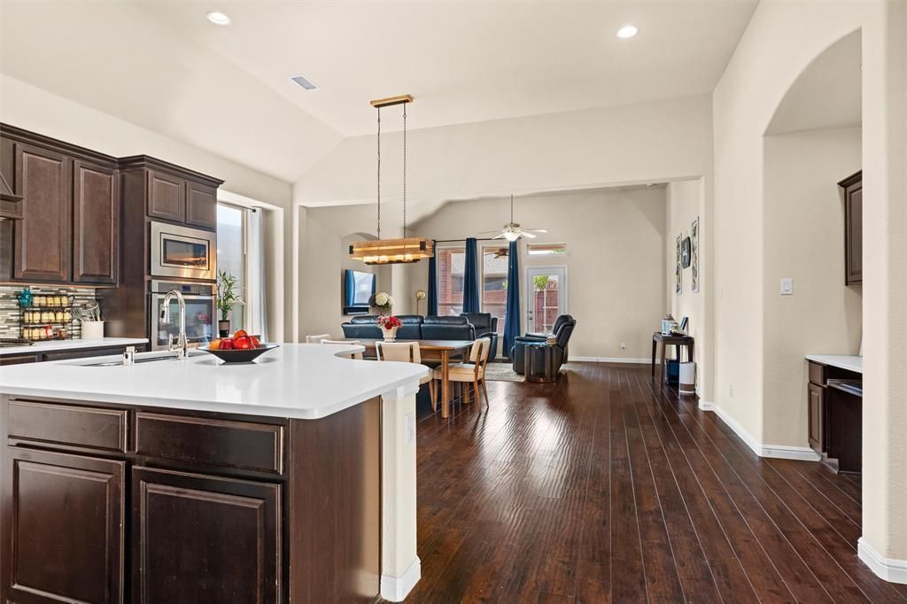This custom Plantation Homes home showcases upgrades and flexible living spaces rarely found in Paloma Creek, offering both comfort and versatility in a well designed layout. Step inside this 2,400+ sq ft home where warm luxury vinyl plank flooring welcomes you into an open, inviting space. The kitchen is a true centerpiece, featuring quartz countertops, custom cabinetry, an oversized island, double ovens, gas cooktop, pot filler, and a Smart Samsung refrigerator with striking Morning Blue glass. Designed with privacy in mind, the split-bedroom layout separates the secondary bedrooms from the owner’s retreat. The primary suite lives like a private sanctuary, complete with a 143 sq ft sitting area—ideal for a reading nook, home office, or quiet escape—along with abundant natural light. The en-suite bath offers dual vanities, a garden tub, separate shower, and a custom storage system in the walk-in closet. Flexibility defines this home. In addition to three bedrooms, you’ll find a dedicated study, plus an expansive 260 sq ft loft with its own full bath—perfect as a media room, guest suite, fitness space, or multi-generational living option. Laundry is equipped with Samsung washer and dryer that convey. Step outside to an extended, sealed patio and enjoy the fully equipped outdoor kitchen with built-in gas grill, sink with running water, and cable outlet—ready for game days and gatherings. Additional highlights include a sealed 20x22 garage, custom exterior LED JellyFish lighting system, and a recently installed roof (March). Efficiency meets peace of mind with owned solar panels to be paid off at closing. A pre-inspection report and energy cost summary are available upon request. Located in the sought-after Paloma Creek community in Little Elm, residents enjoy access to four pools, a fitness center, clubhouse, and scenic parks—bringing resort-style amenities right to your doorstep.