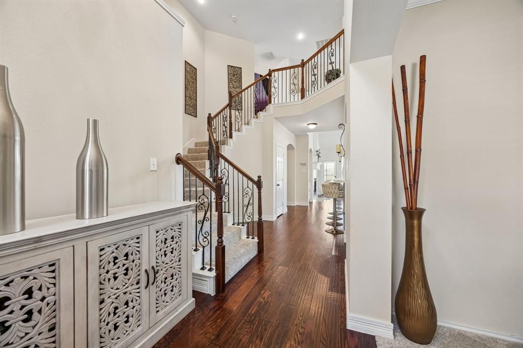Perched on a premium golf course lot in the highly sought-after Waterview community, this stunning 4-bedroom, 2-story home offers breathtaking views and unforgettable sunsets right from your own backyard. Upstairs, a spacious 400+ sq ft game room and media space showcases sweeping golf course vistas-perfect for entertaining or relaxing at the end of the day. From the moment you enter, you’re greeted by a striking spiral staircase that sets the tone for the home’s thoughtful design and character. Inside, you’ll find numerous updates throughout, including a beautifully renovated kitchen, refreshed primary and secondary bathrooms, updated windows, a reimagined fireplace with floor-to-ceiling tile, and upgraded garage door openers, offering both style and peace of mind. Outdoor living shines here with a screened-in porch and an added 10x10 concrete pad, creating the perfect setting for gatherings, grilling, or simply enjoying the serene surroundings. Ideally situated on a half cul-de-sac, this home offers both privacy and convenience. Residents of Waterview enjoy access to exceptional amenities, including a golf course, resort-style pool and waterpark, tennis courts, scenic ponds, and charming pocket parks—all meticulously maintained. Located near multiple schools, and just minutes from shopping and dining at Firewheel Town Center, as well as lakeside entertainment at The Harbor on Lake Ray Hubbard, this home truly offers the best of lifestyle and location. Don’t miss your opportunity to own a golf course retreat in one of the area’s most desirable neighborhoods.